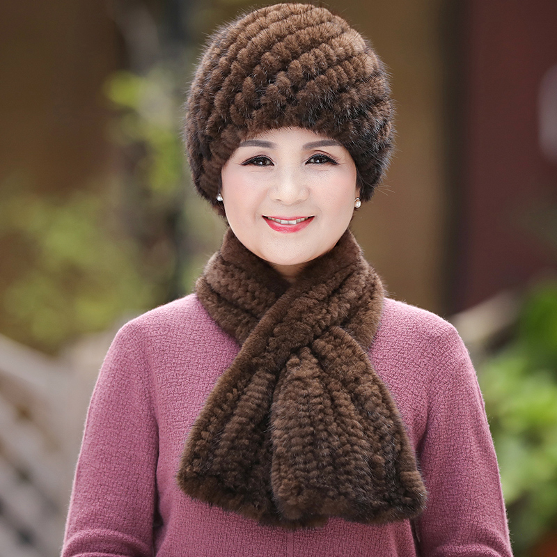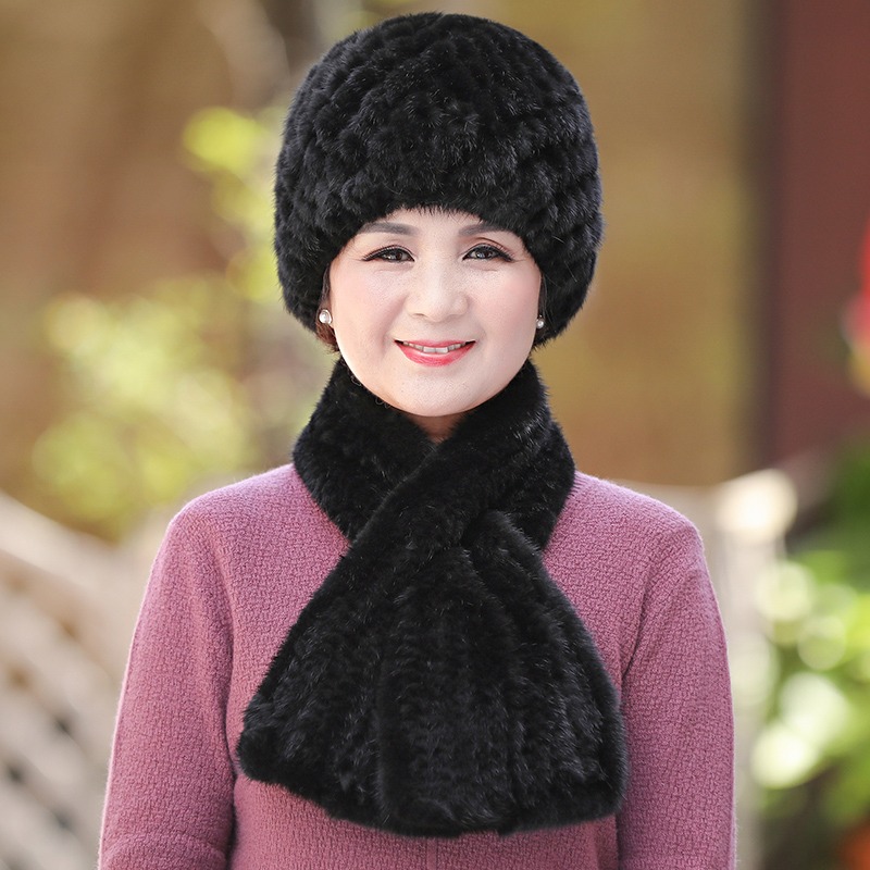 皮草老人帽子女冬天水貂毛围巾秋冬季妈妈中老年人奶奶老太太帽子