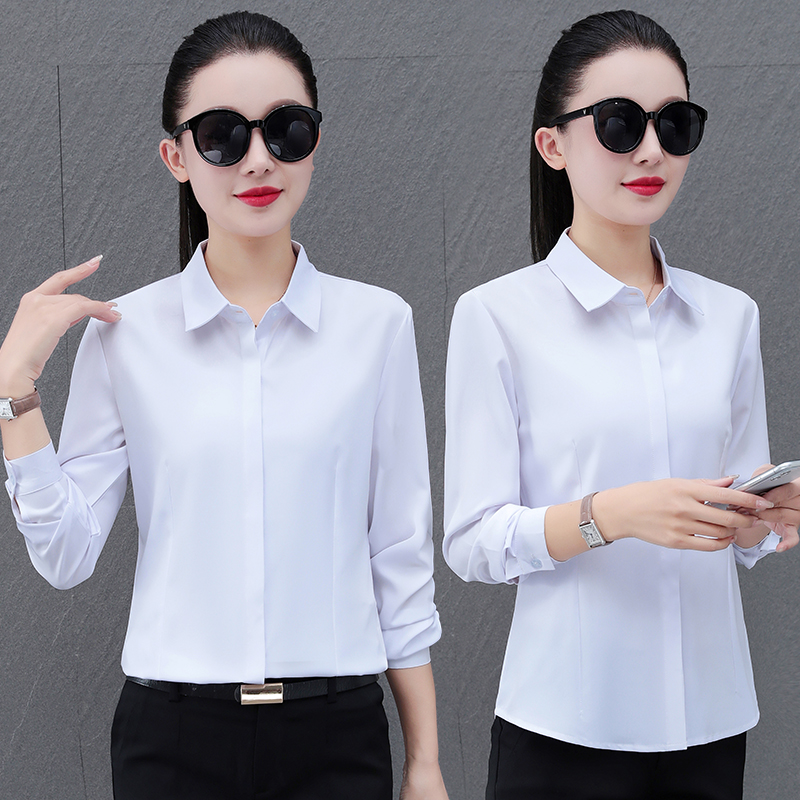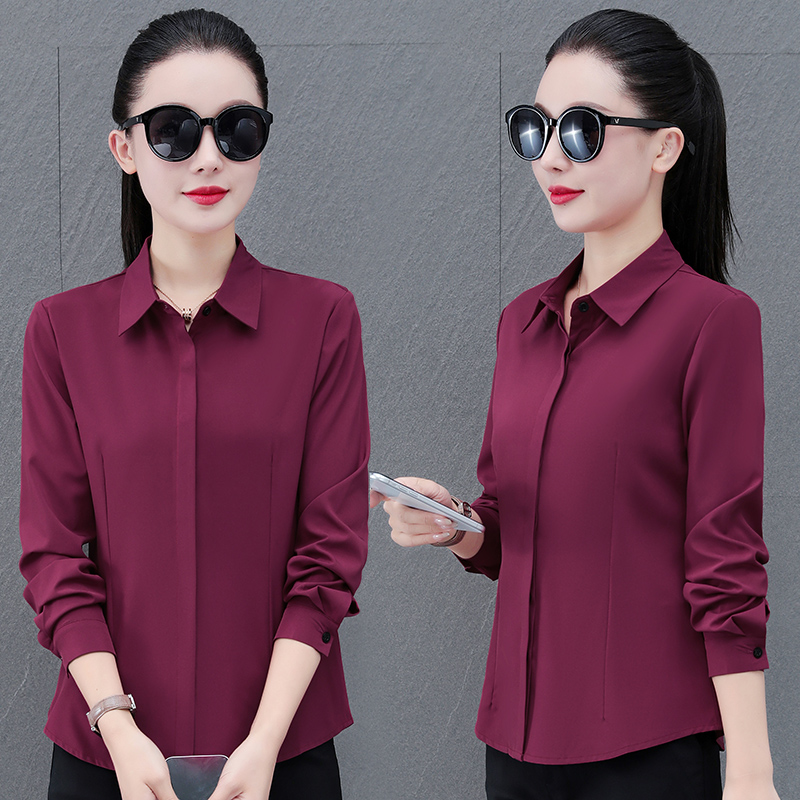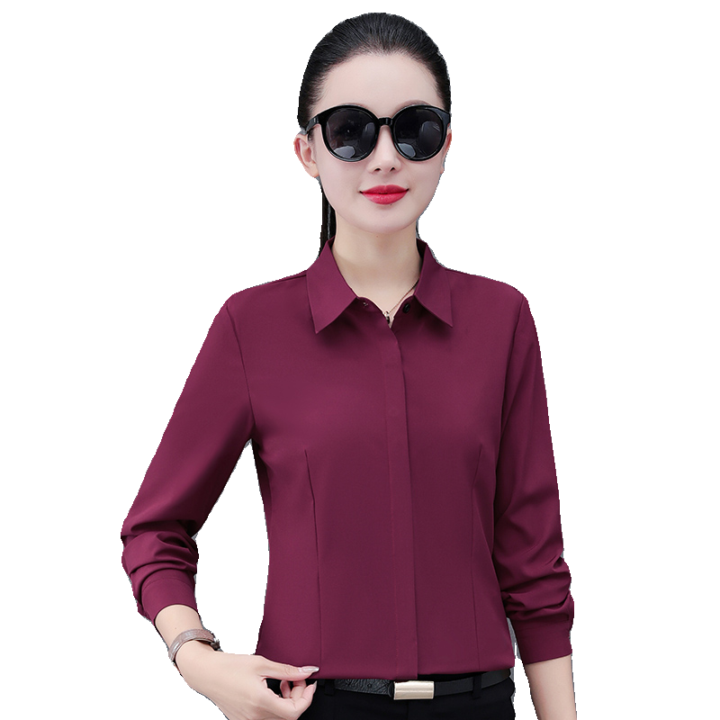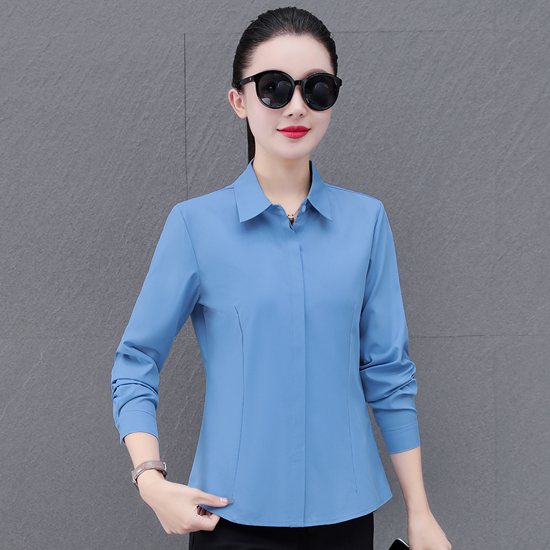 蓝色衬衣女款2025年春季新款长袖衬衫通勤职业装妈妈修身雪纺上衣