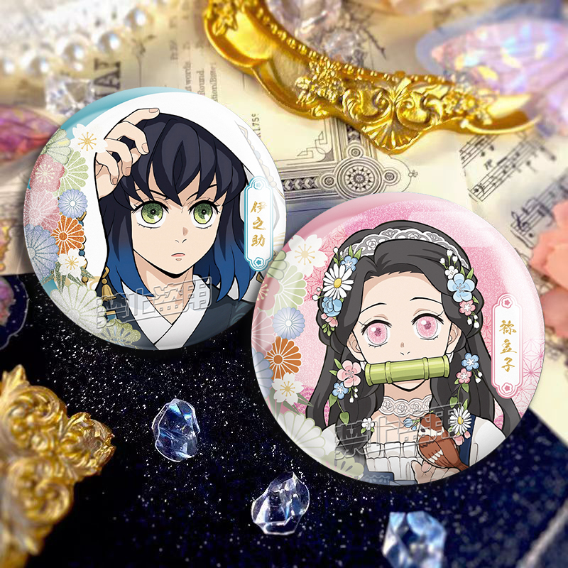 鬼灭之刃动漫同人原创周边日谷底二次元银葱双闪吧唧谷子徽章
