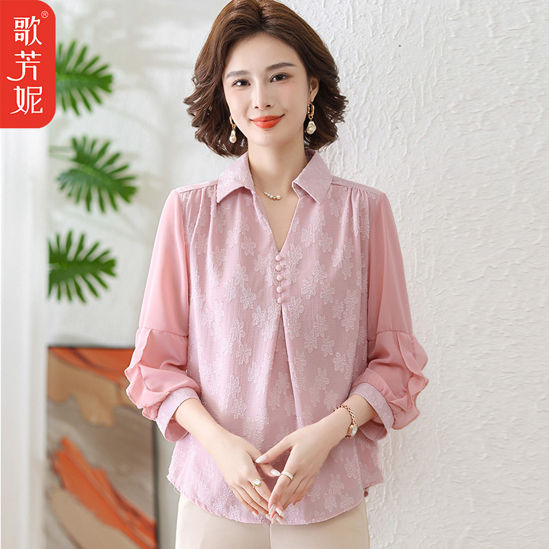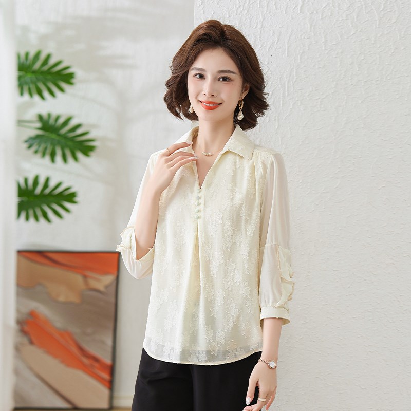 中年妈妈中袖雪纺衬衫中老年女装2024春夏装新款上衣短袖小衫套装