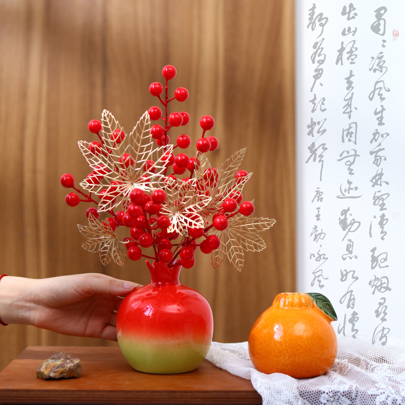 石榴橘子陶瓷小花瓶摆件