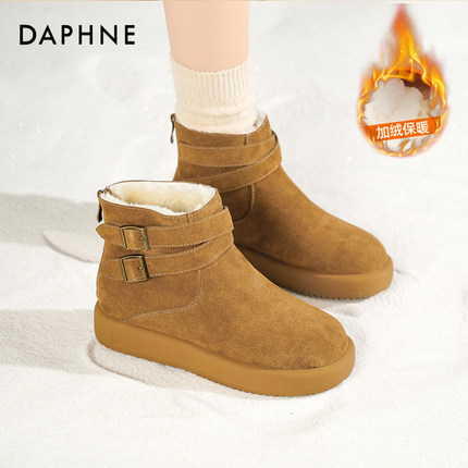 达芙妮雪地靴厚底女款2025新款冬季鞋子女鞋面包鞋短靴保暖棉鞋女