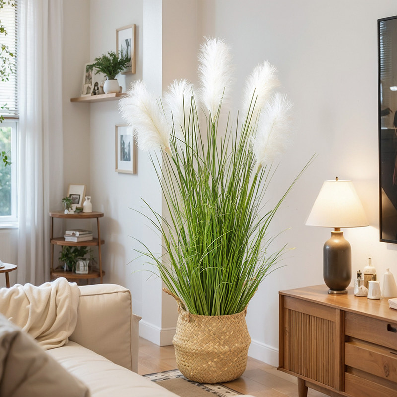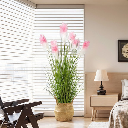 芦苇草干花花束室内落地摆设仿真花客厅小众高级感粉色装饰摆件