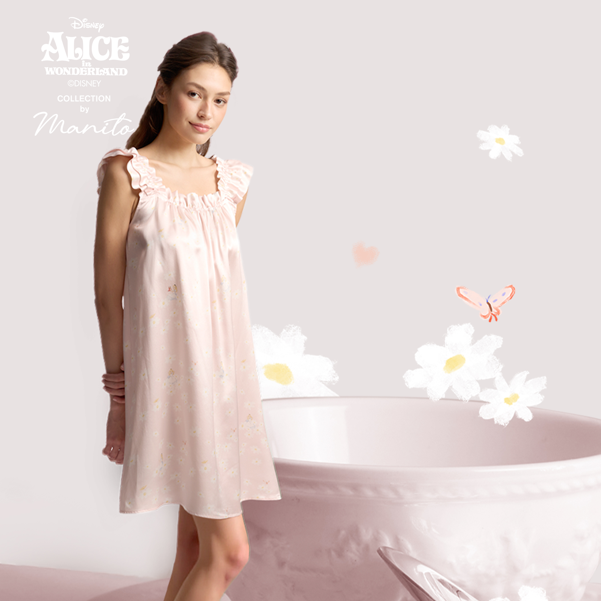 MANITO迪士尼爱丽丝合作系列 小雏菊 Daisy 桑蚕丝木耳边短裙
