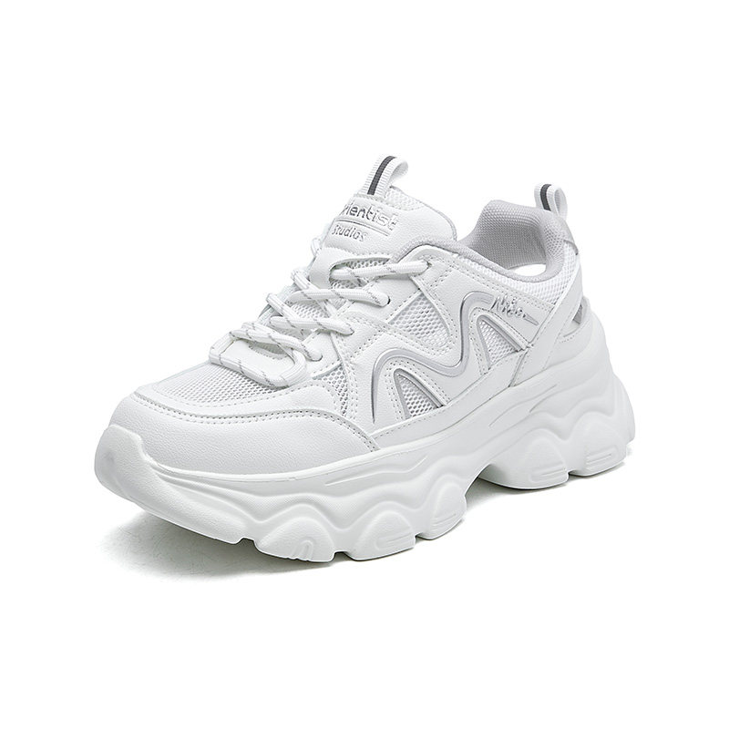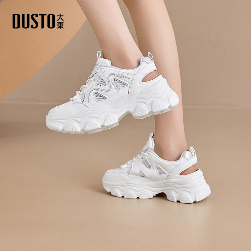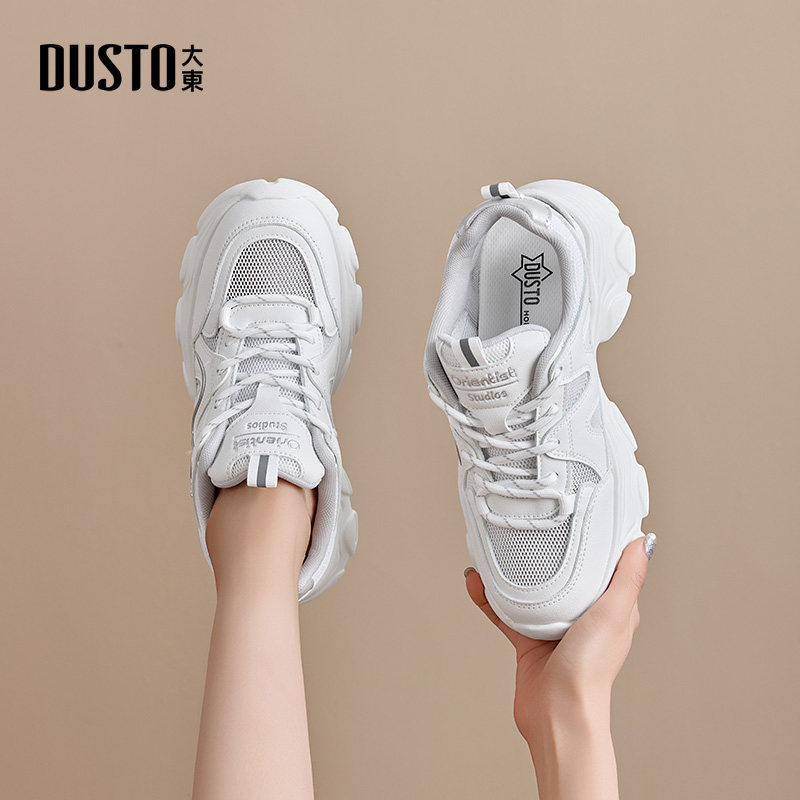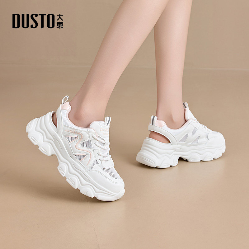 大东厚底老爹鞋女款2025新款冬季白色透气增高女鞋网鞋休闲运动鞋