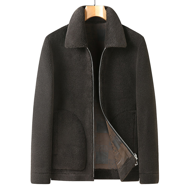 男士颗粒绒两面穿羊毛夹克冬季新款男装中青年商务休闲加厚皮夹克