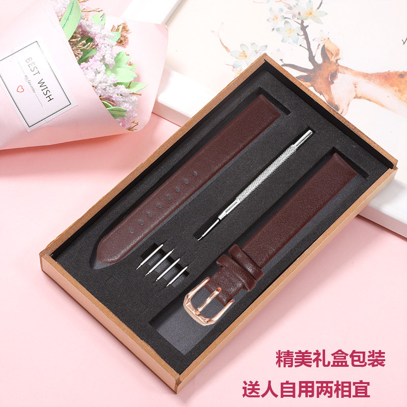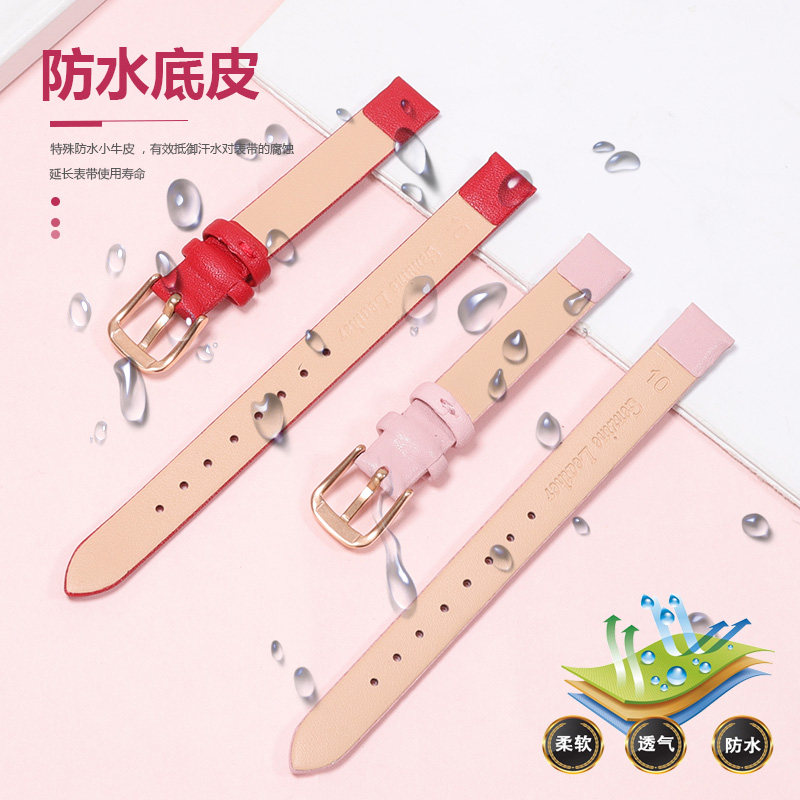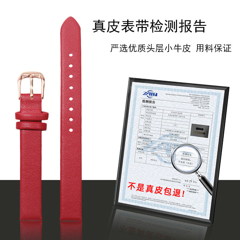 小绿表手表带真皮 女款黑色牛皮带10mm适配阿玛尼ob聚利时dw ck