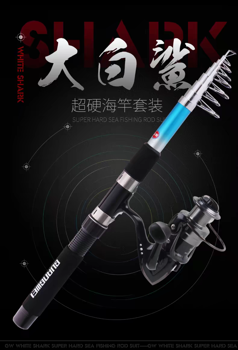 光威大白鲨海竿套装鱼线轮爆炸钩线组合纺车轮抛竿2.4/2.7/3.6