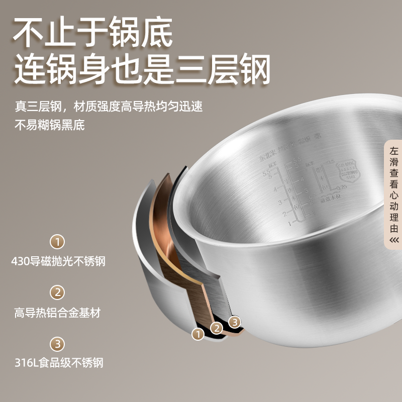 适用飞利浦电饭煲3升316L不锈钢内胆HD3031/HD3032/HD3051/hd3151
