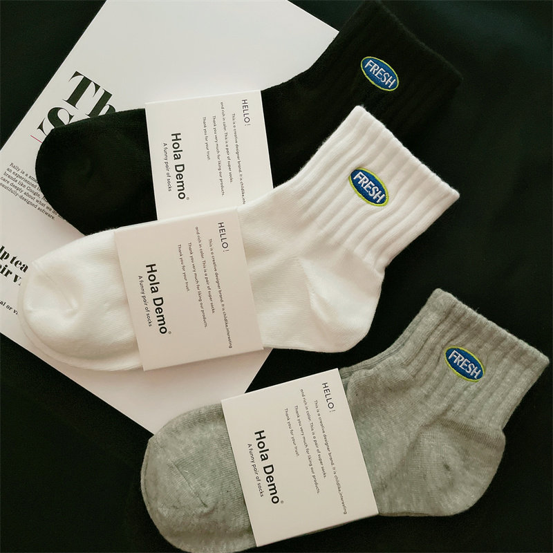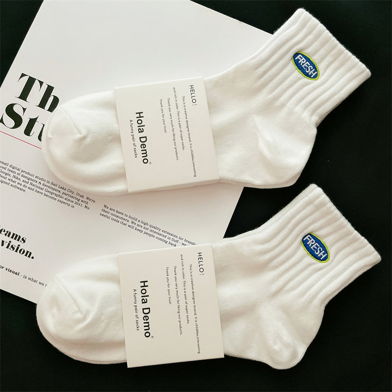 袜子男女纯棉中筒短袜白色运动袜