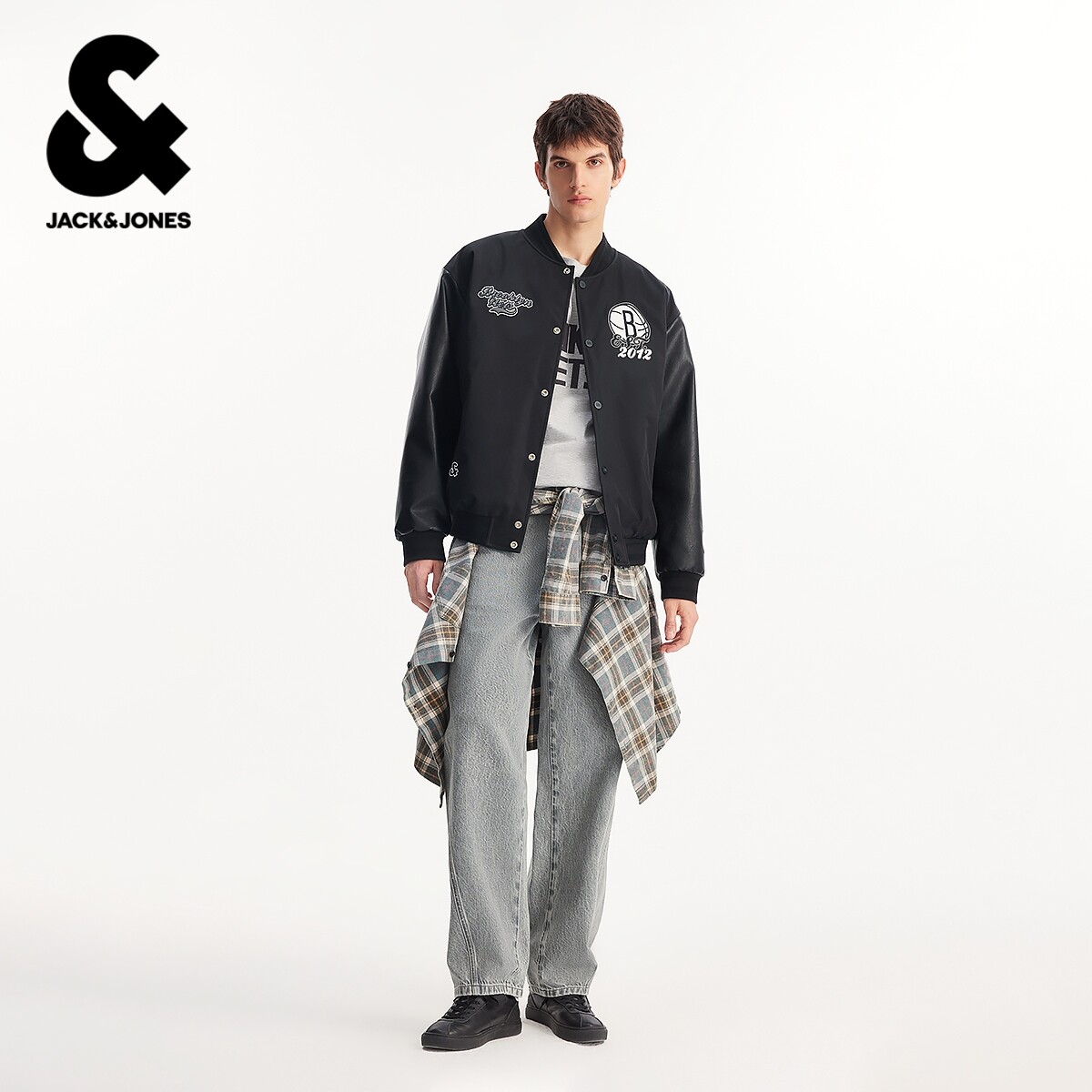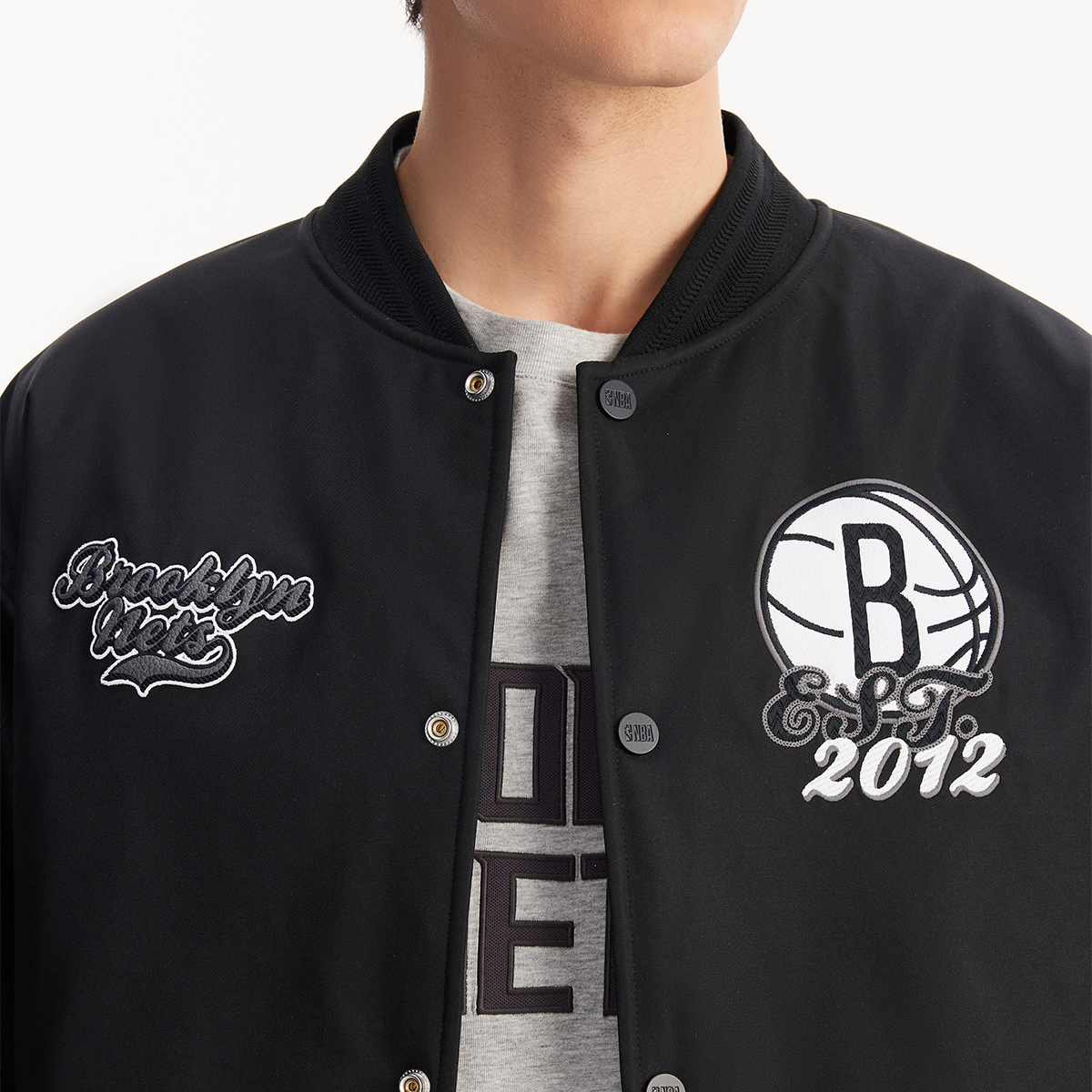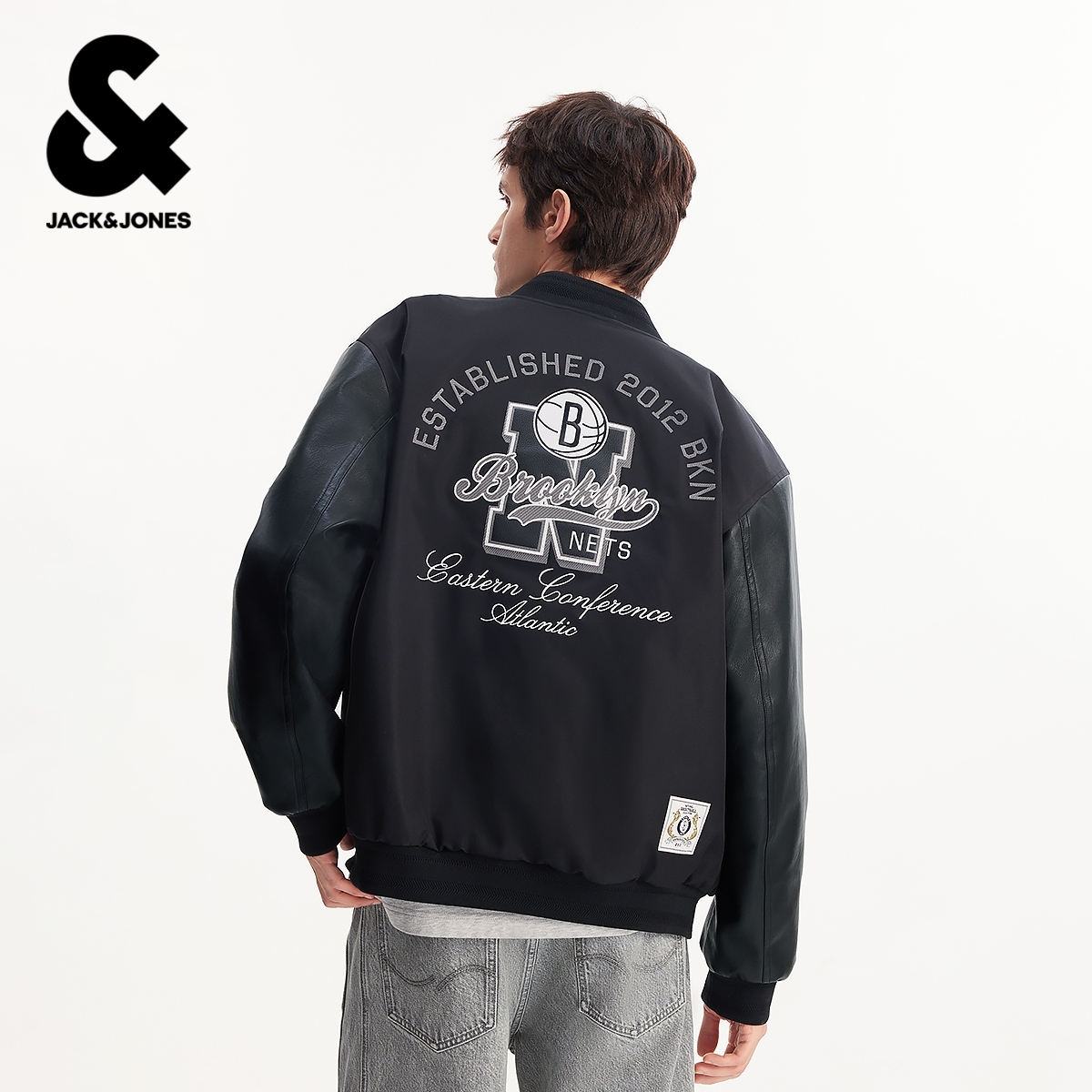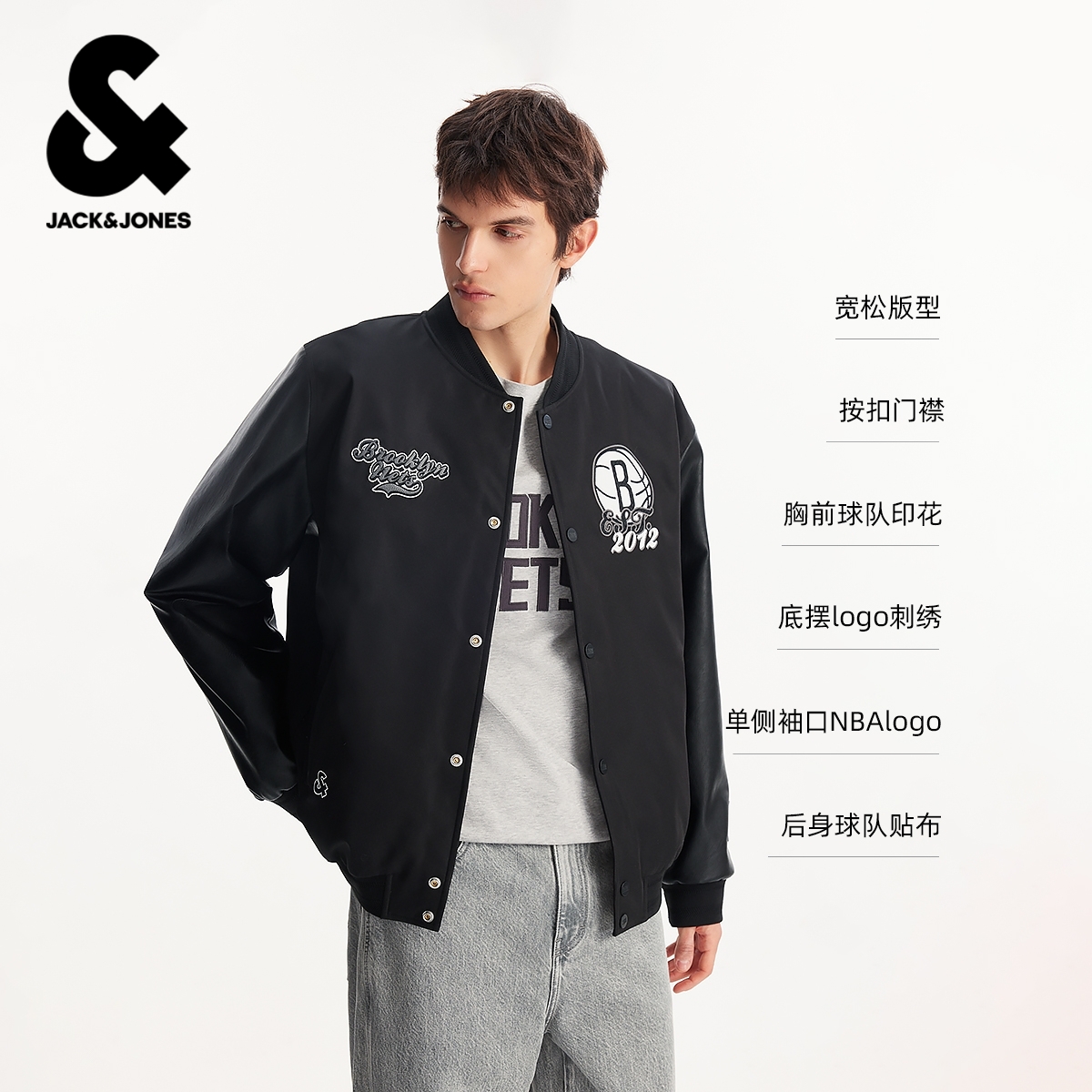 杰克琼斯NBA篮网队联名款男装2026春新款棒球领印花长袖棉服