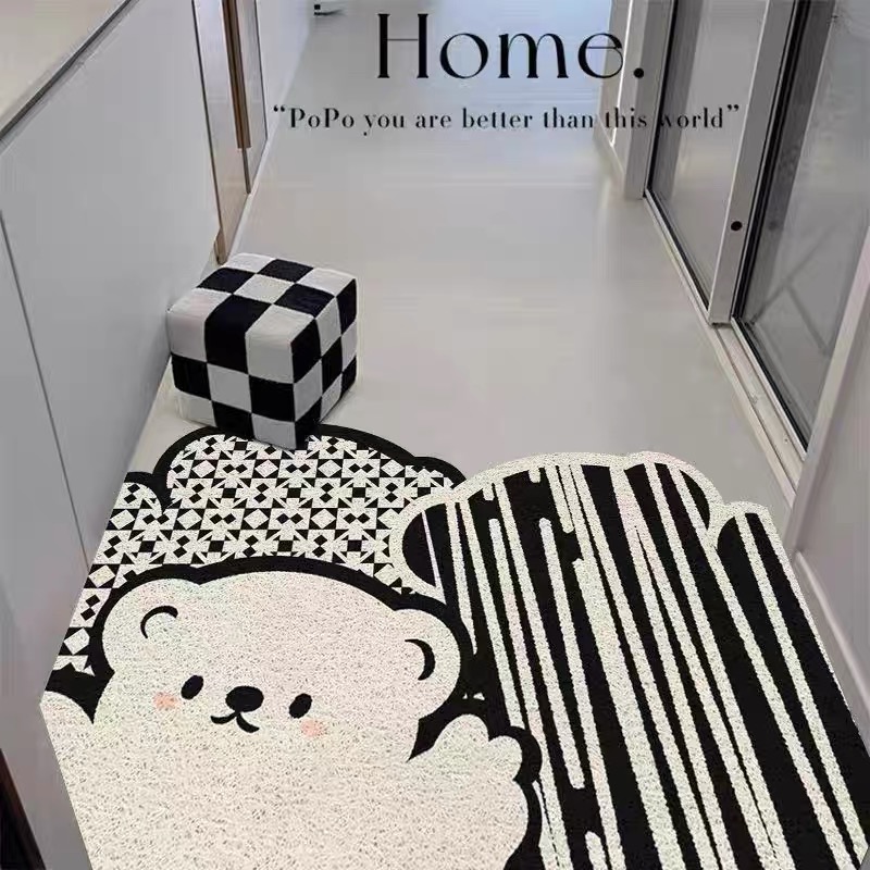 黑白可爱卡通进门门垫丝圈脚垫玄关除尘耐脏家用垫子免洗垫可裁剪