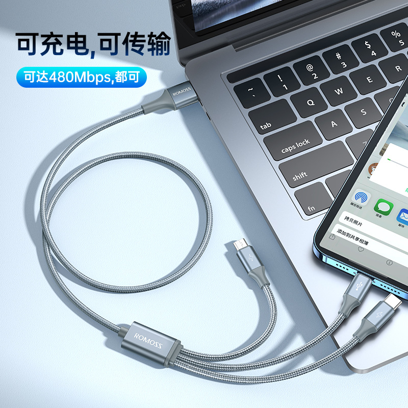 罗马仕三合一数据线适用苹果13p一拖三手机安卓tpc快充充电线