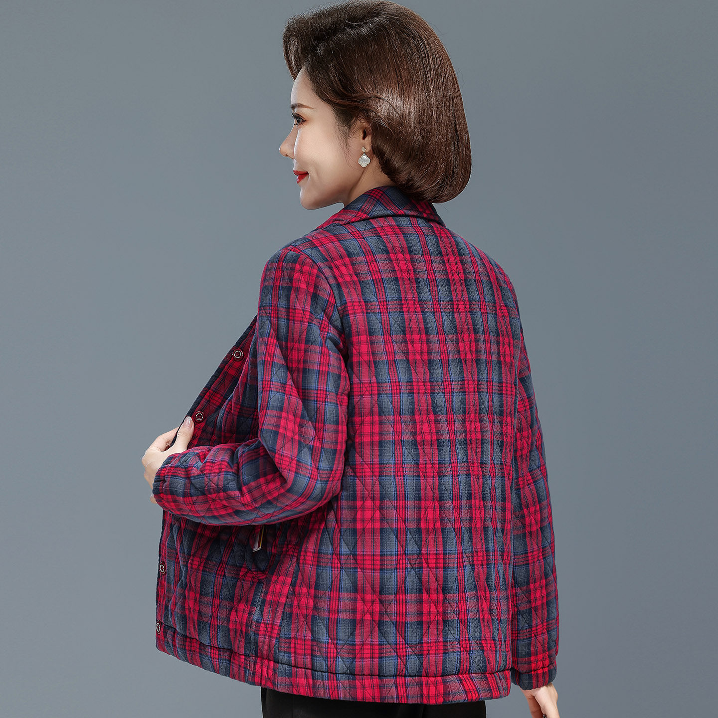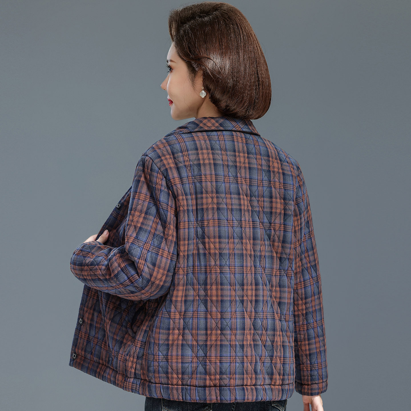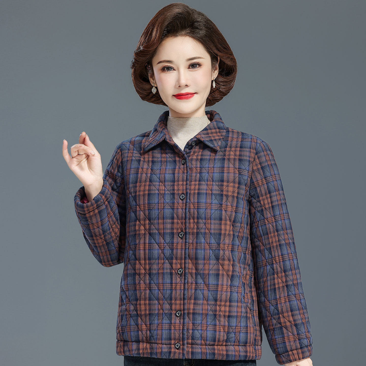 妈妈春秋格子外套夹棉薄棉服纯棉秋冬装新款洋气中老年女奶奶衬衣