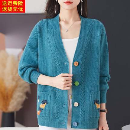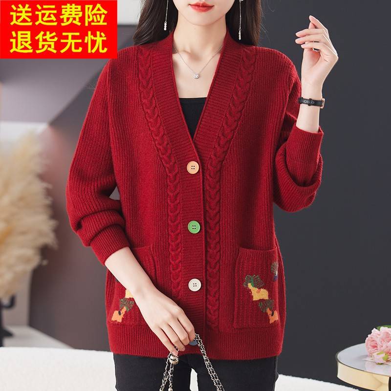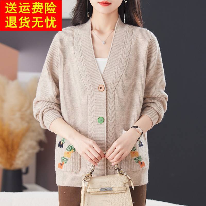 针织开衫外套女士毛衣春秋季新款妈妈大码宽松减龄外穿时尚洋气潮