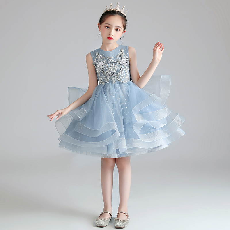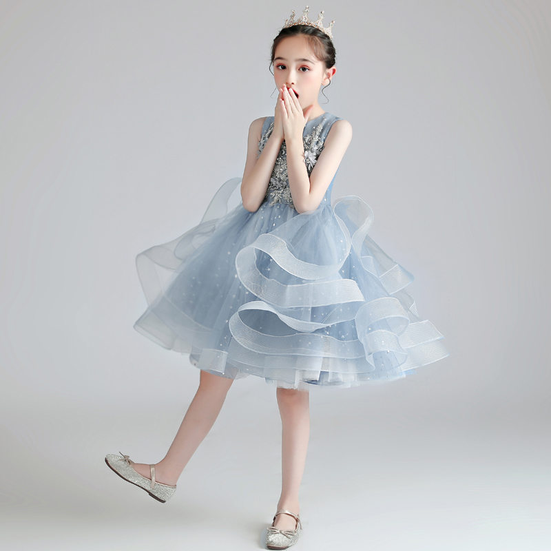 儿童礼服公主裙女童钢琴演出蓬蓬裙花童小女孩主持人生日蓝色夏季
