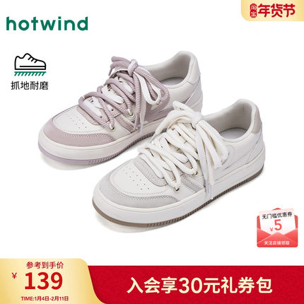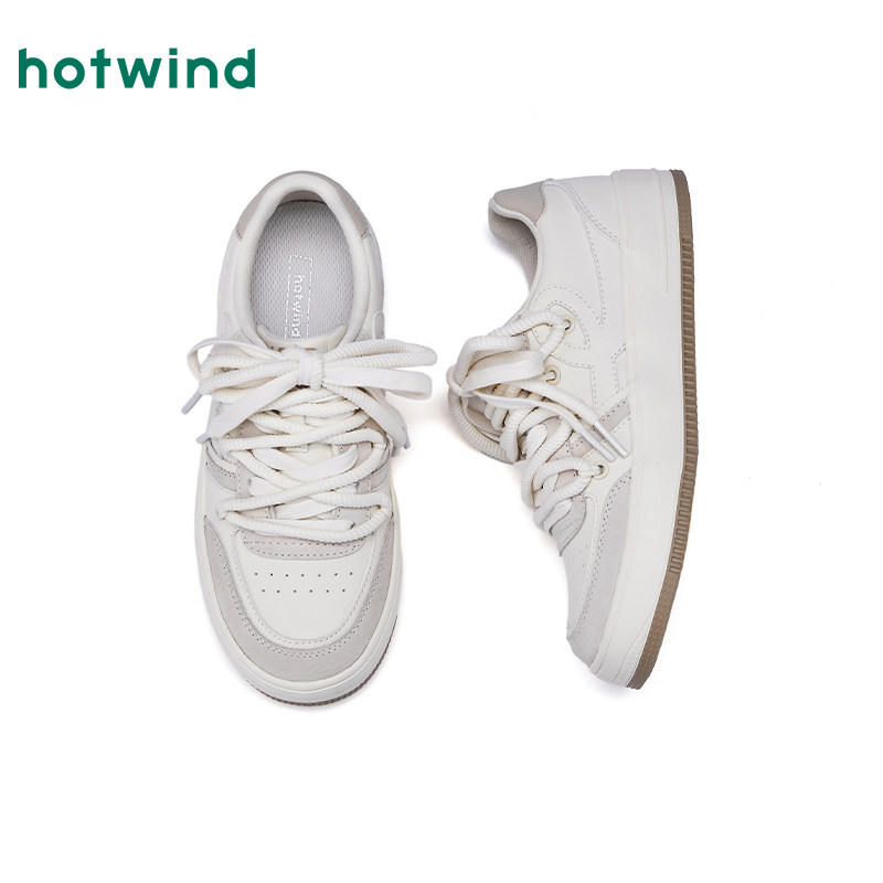 热风厚底板鞋女鞋2026年春季新款运动休闲小白鞋户外百搭慢跑鞋子