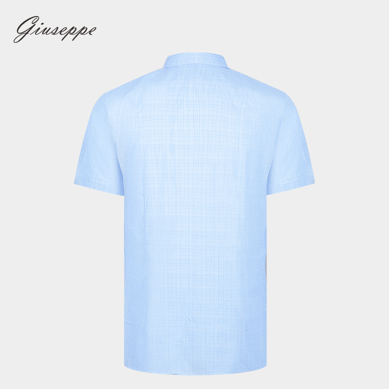 乔治白夏季薄款男士短袖衬衫尖领蓝白格子衬衣柔软休闲修身上衣