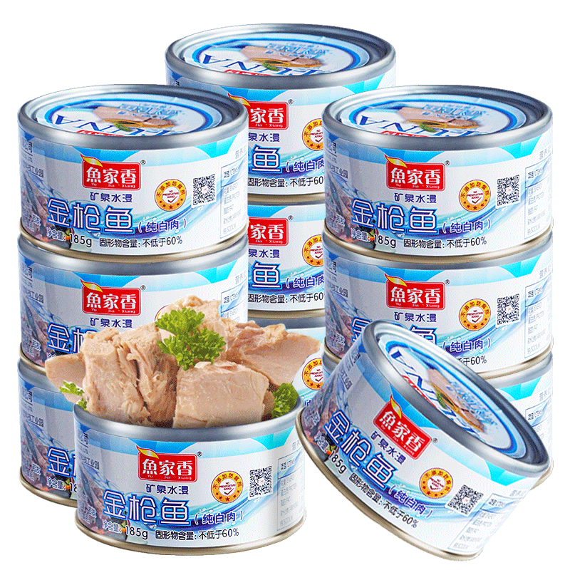 鱼家香水浸金枪鱼罐头10罐代餐寿司沙拉即食低脂鱼肉健身吞拿鱼