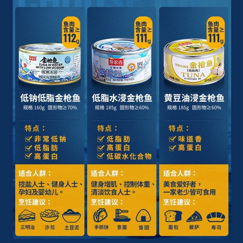 鱼家香代餐低脂健身水浸金枪鱼