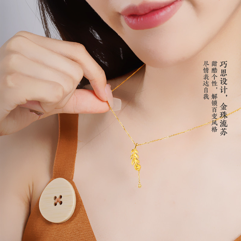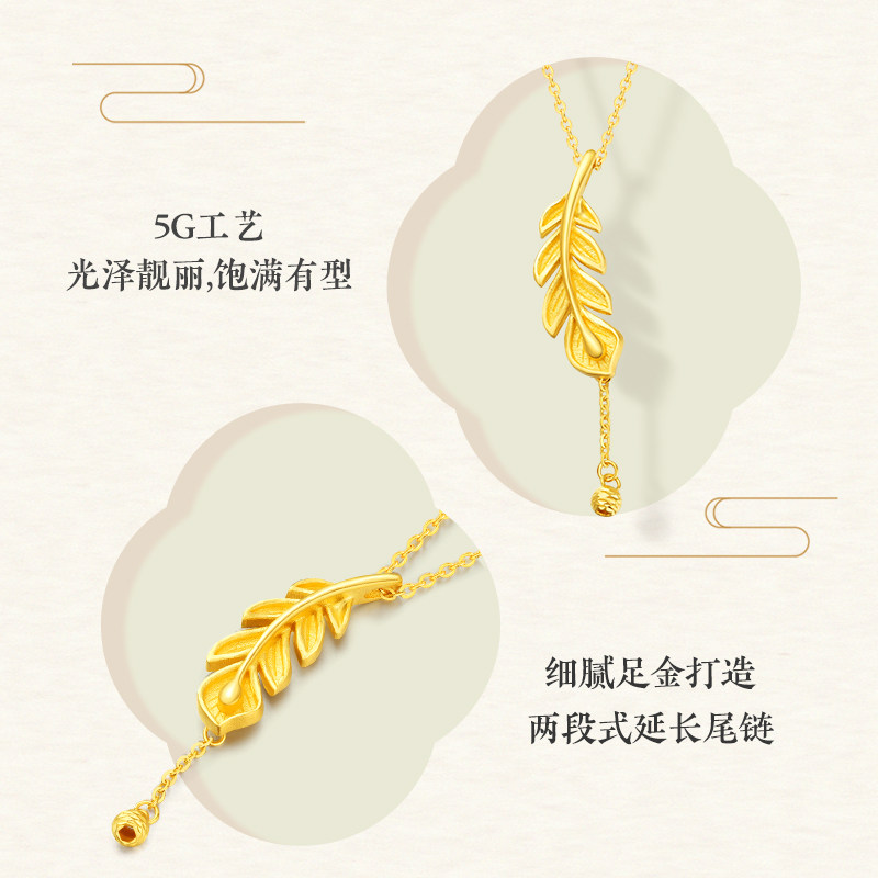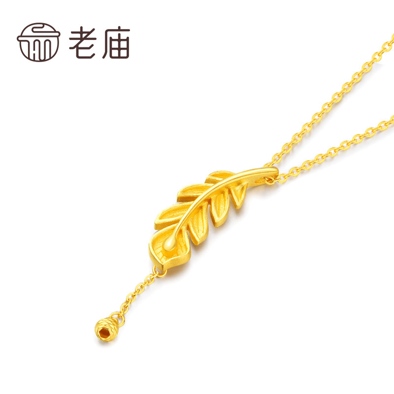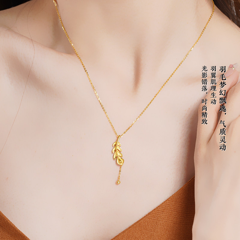 老庙足金凤羽流苏金珠5G羽毛项链