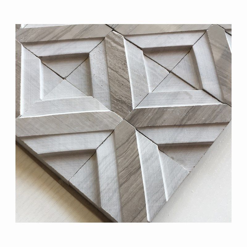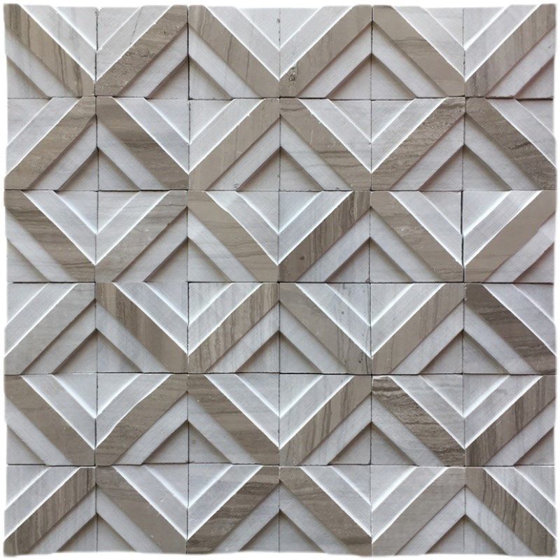 天然石材马赛克墙贴大理石灰木纹回字形3d文化石背景墙艺术砖吧台