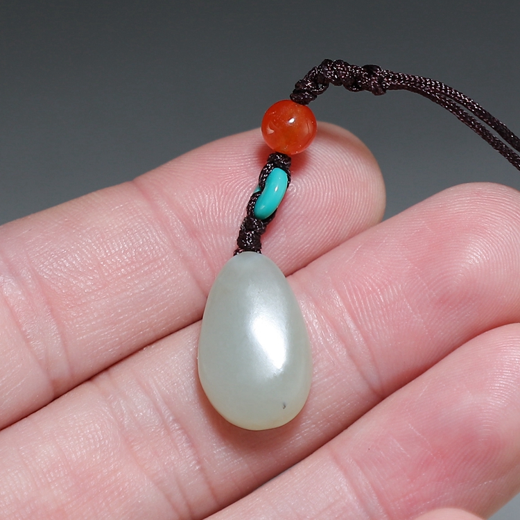[新品特价]和田玉荷花小吊坠 天然新疆青白玉石手机挂件 楼叔孤品