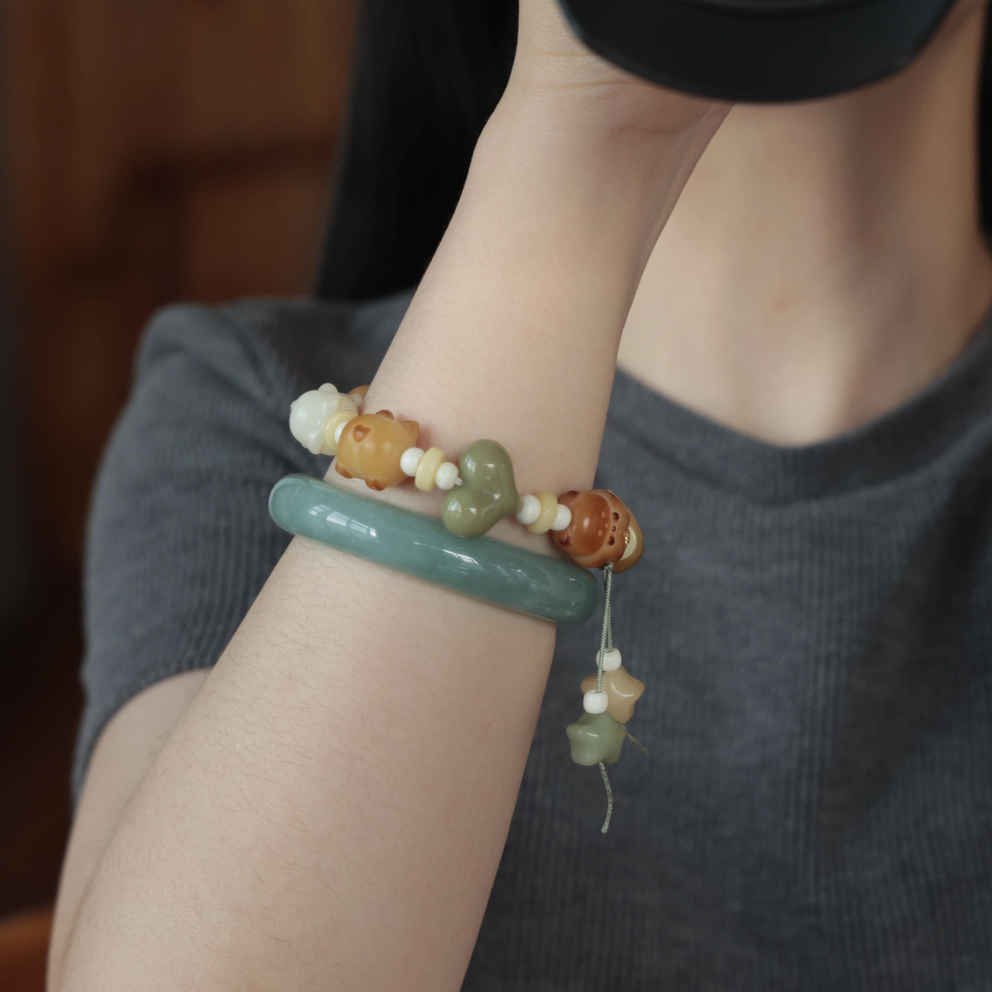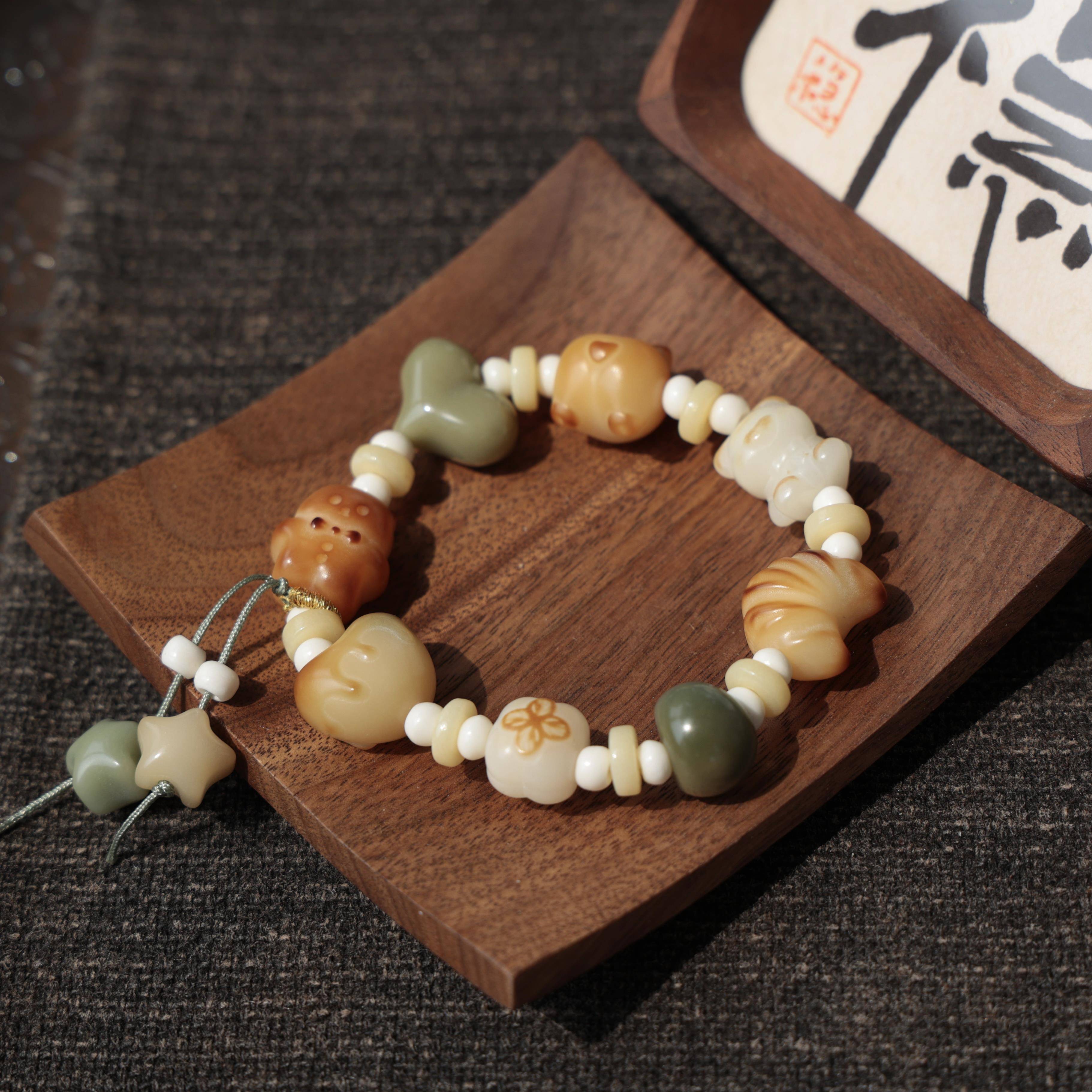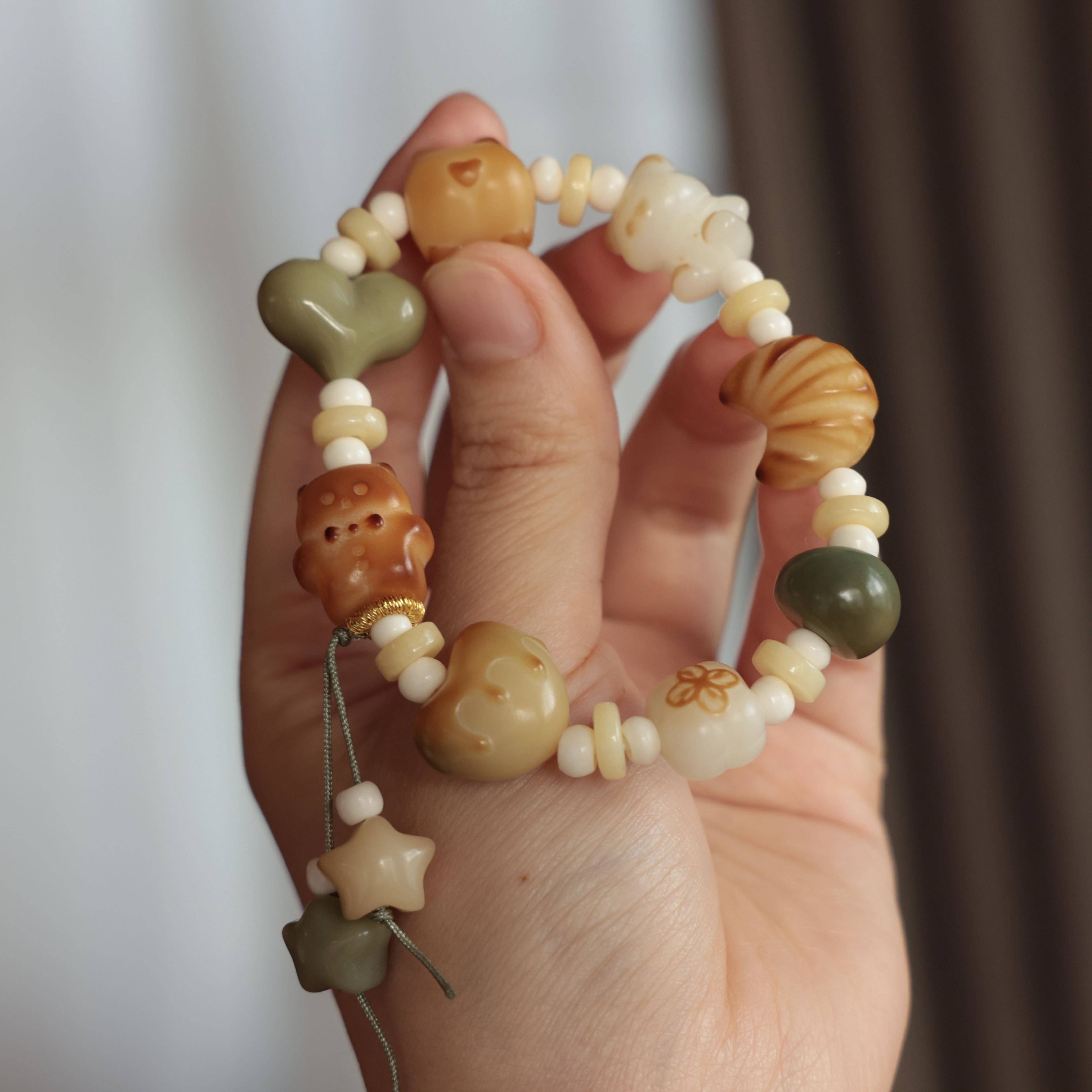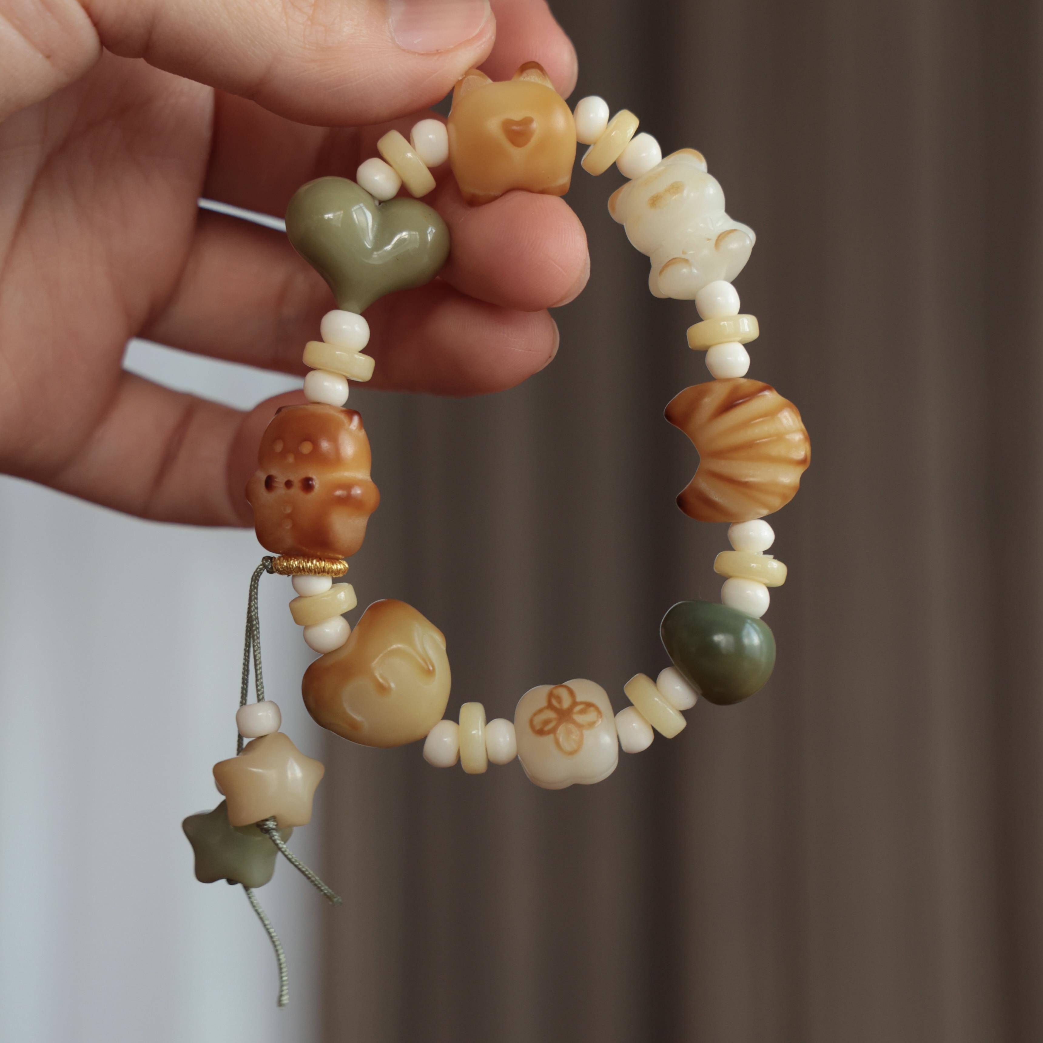 原创阿拉善玛瑙屁桃手链配菩提根小熊柯基屁股爱心柿子牛角包星星