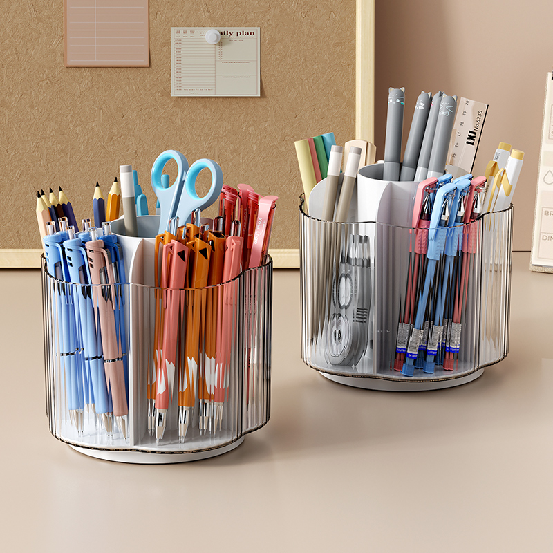 桌面化妆刷收纳筒梳妆台旋转化妆品收纳盒口红置物架透明分格笔筒