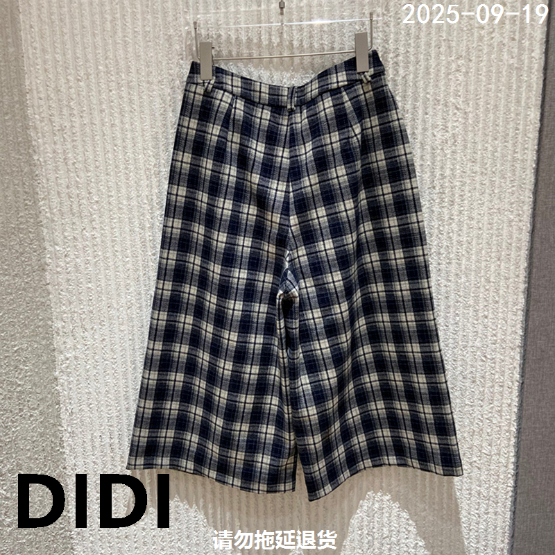 欧洲站2025秋季新款复古格子高腰阔腿休闲裤女百搭七分裤89026