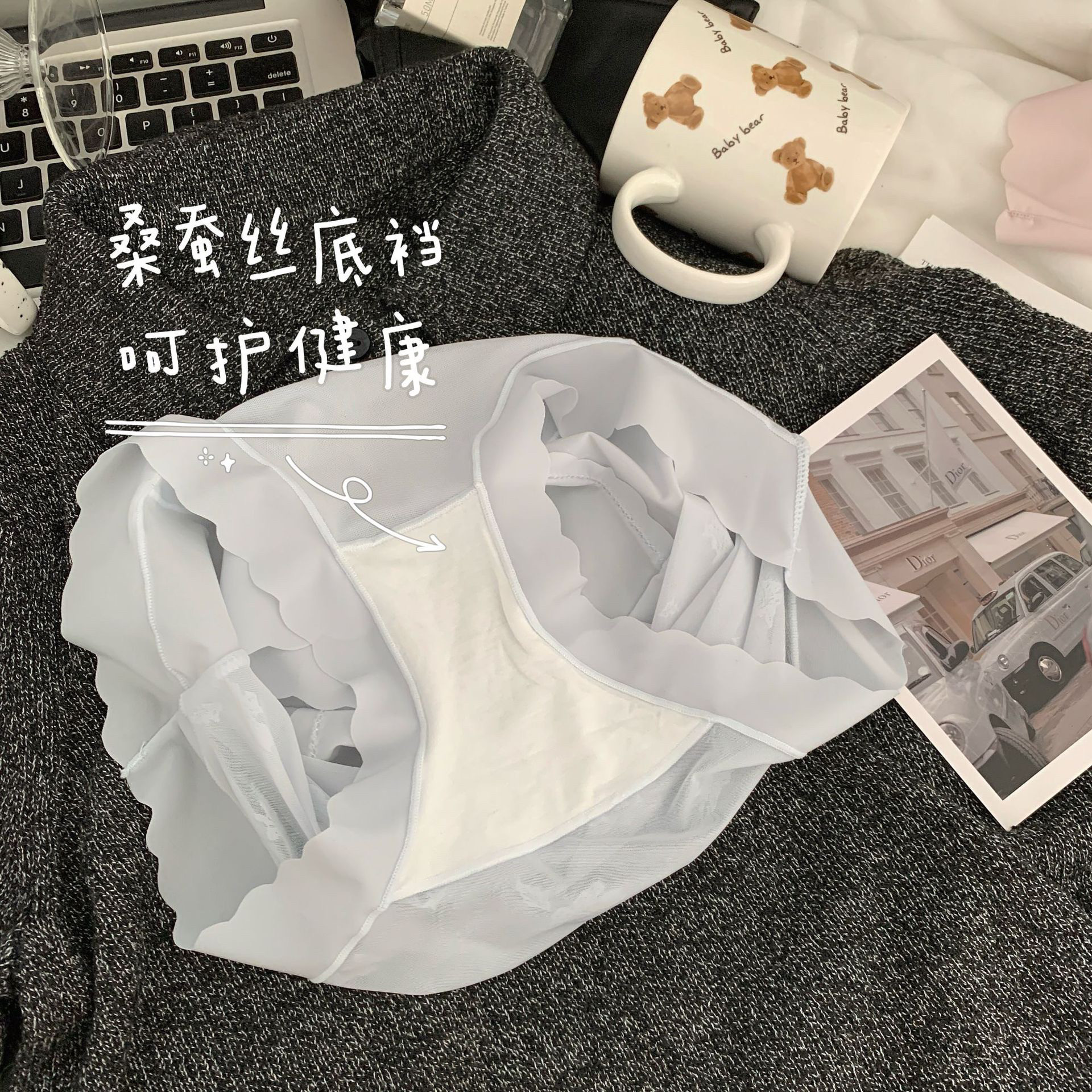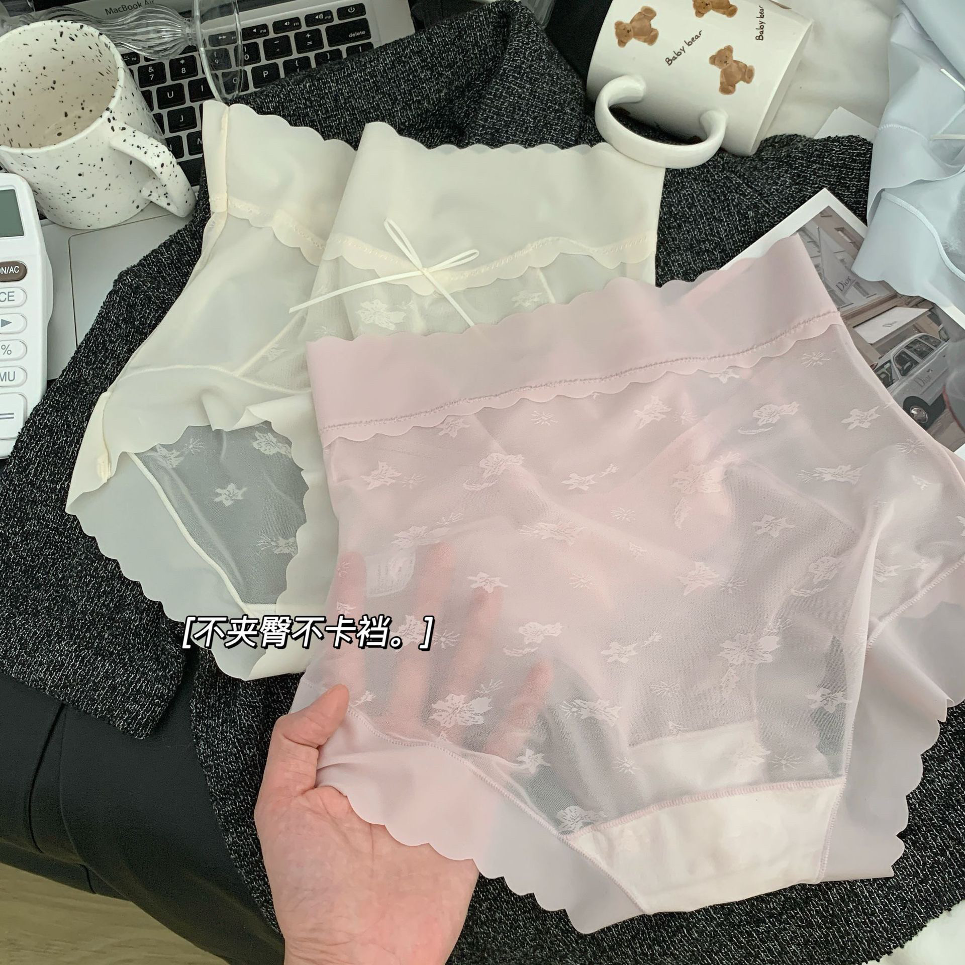 大码超薄冰丝无痕高腰内裤女网纱蕾丝性感裤头桑蚕丝新款白色收腹