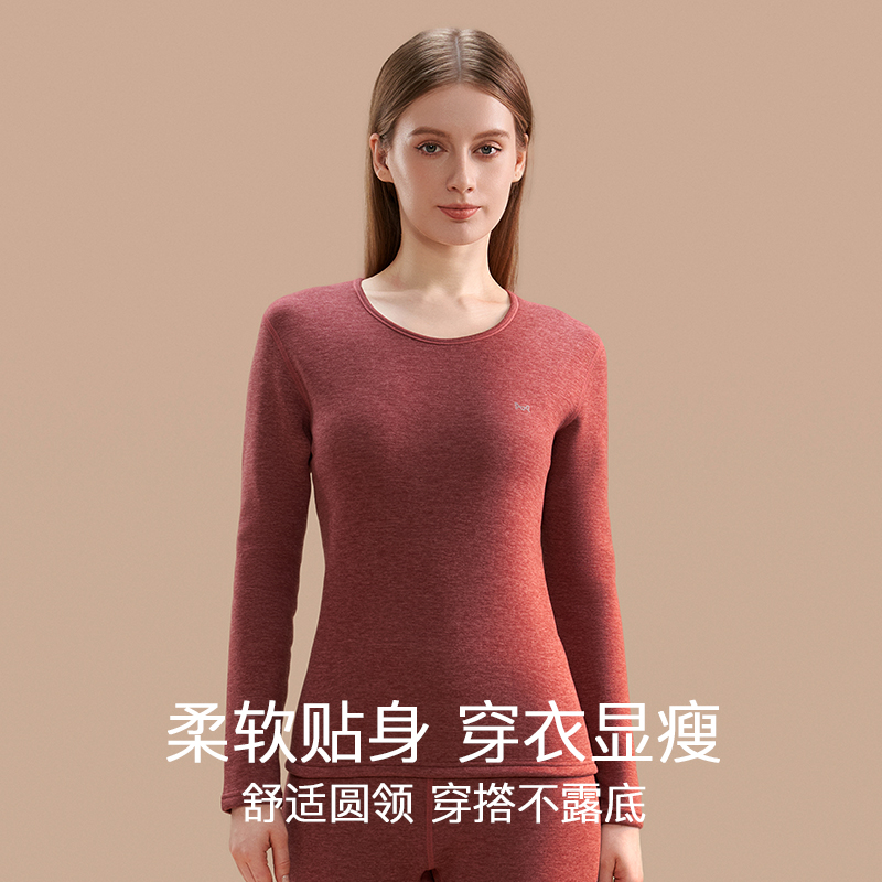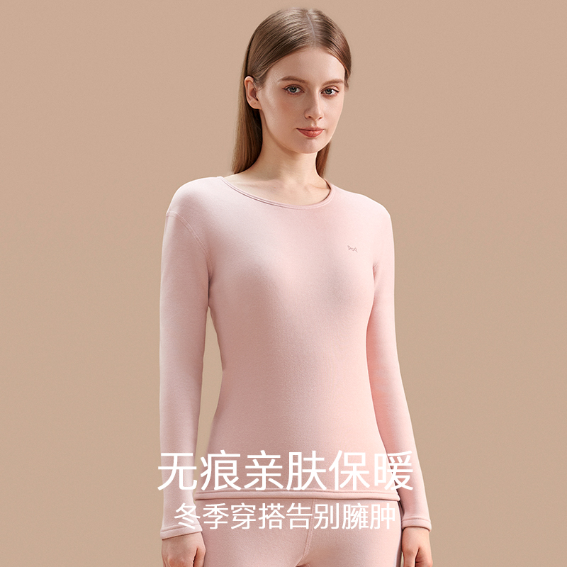 猫人保暖内衣女士套装加绒加厚羽绒蚕丝无痕基础打底秋衣秋裤秋冬