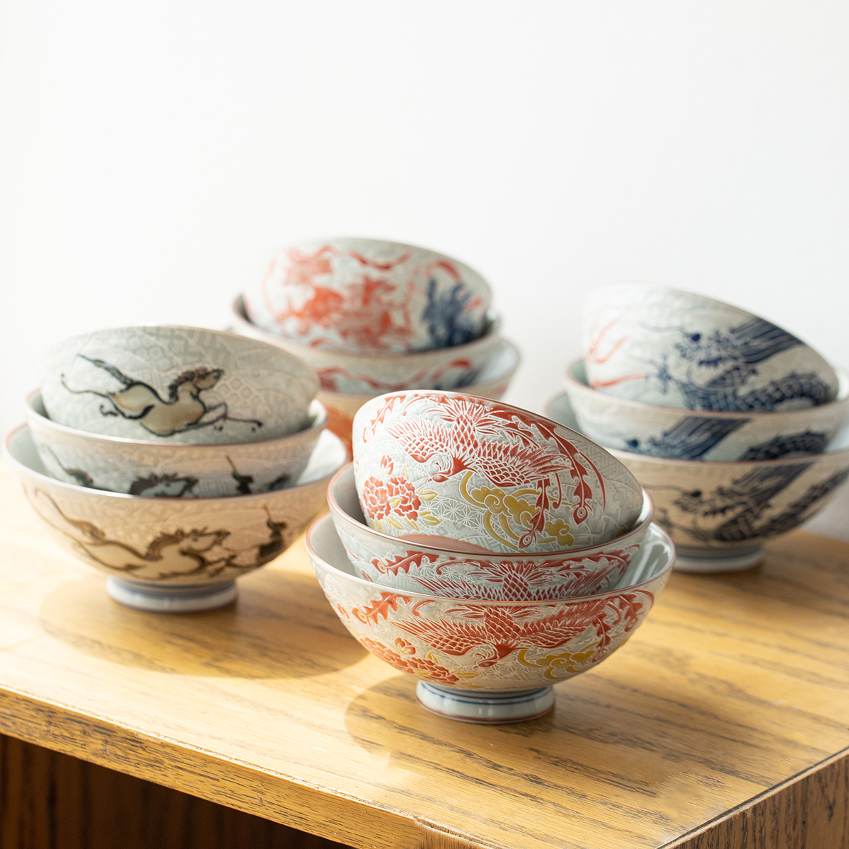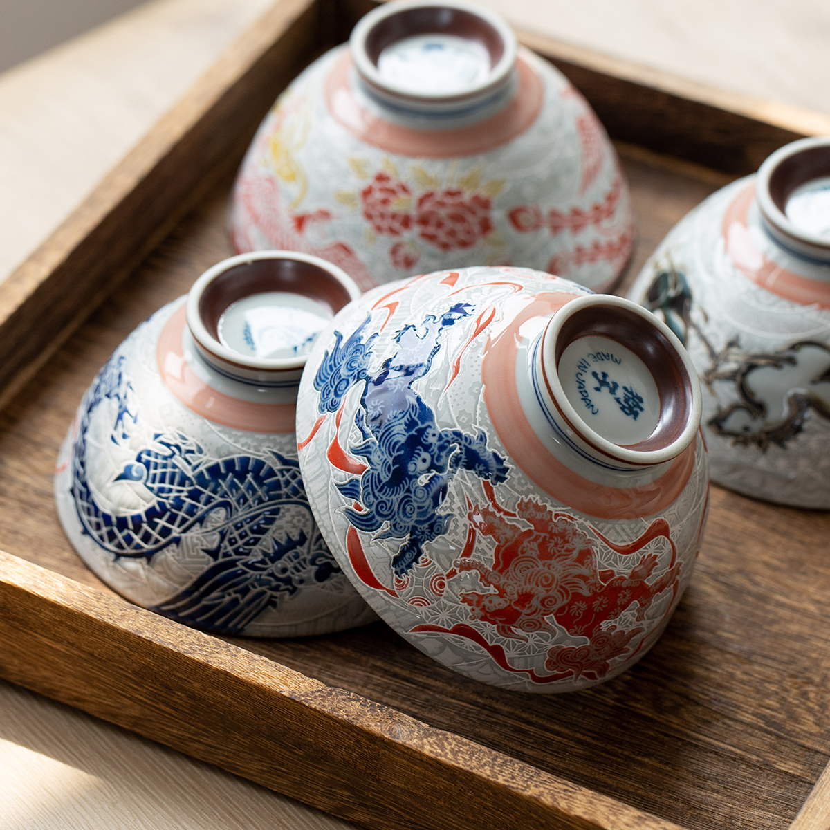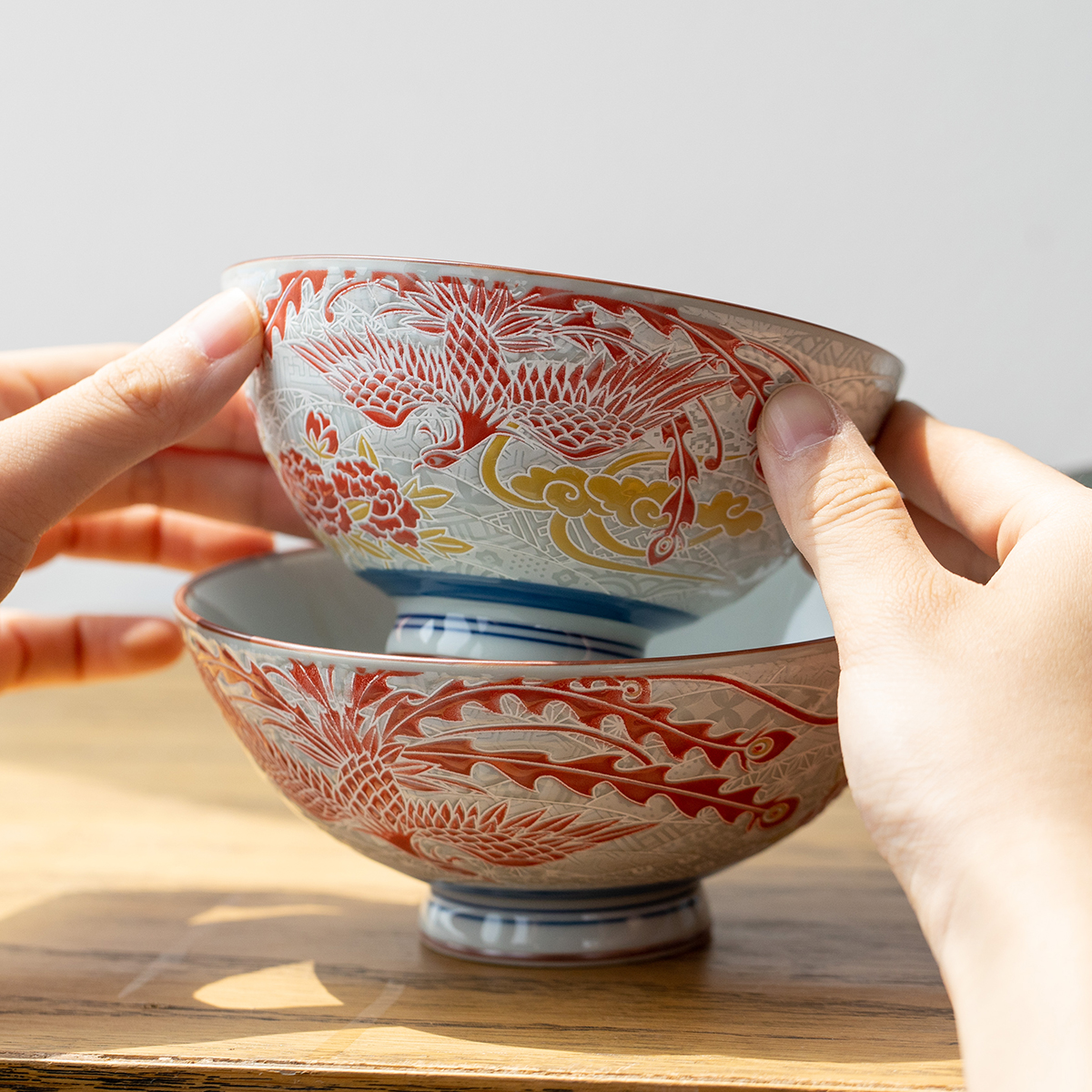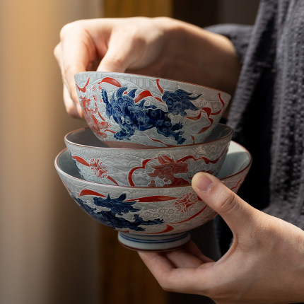 日本进口美浓烧龙凤汤面碗日式米饭碗釉下彩餐具婚庆礼品复古对碗
