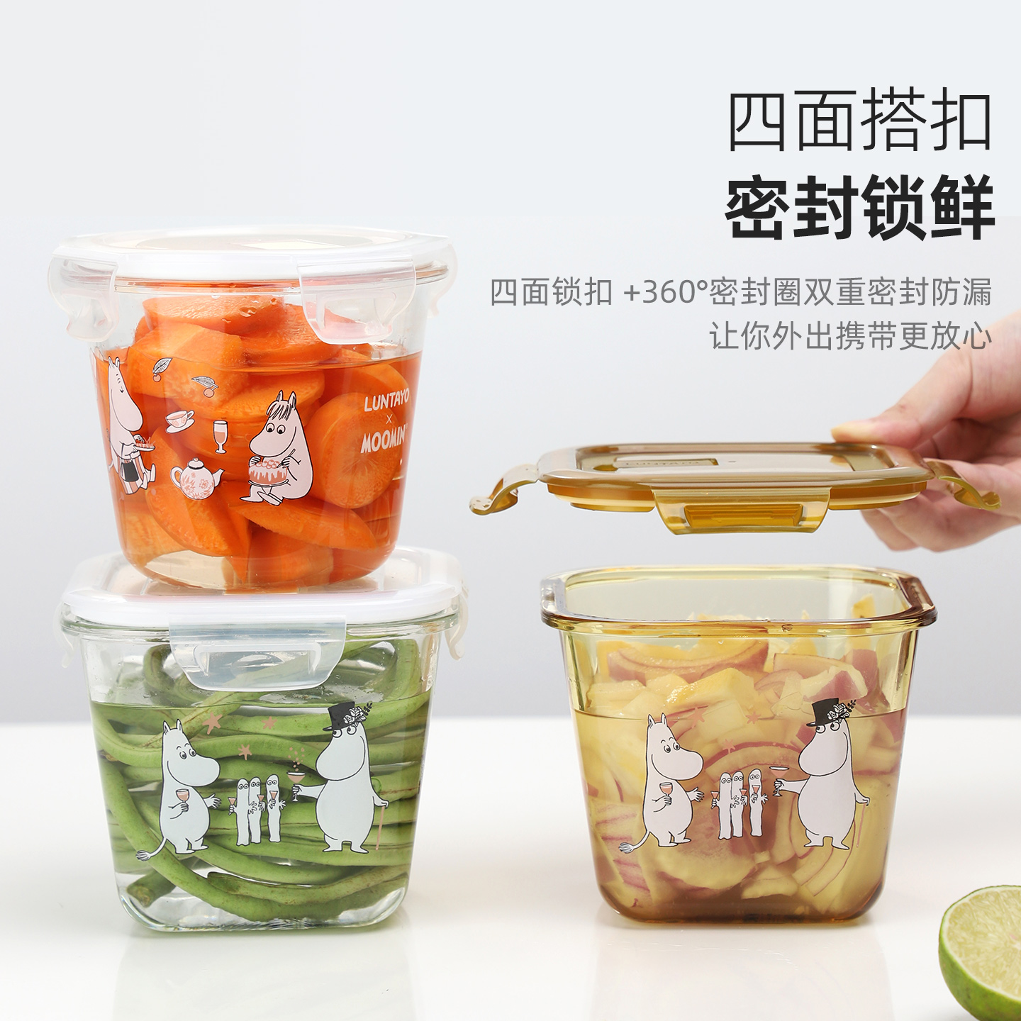 Luntayo×姆明联名玻璃保鲜盒饭盒微波炉加热专用碗上班族便当盒