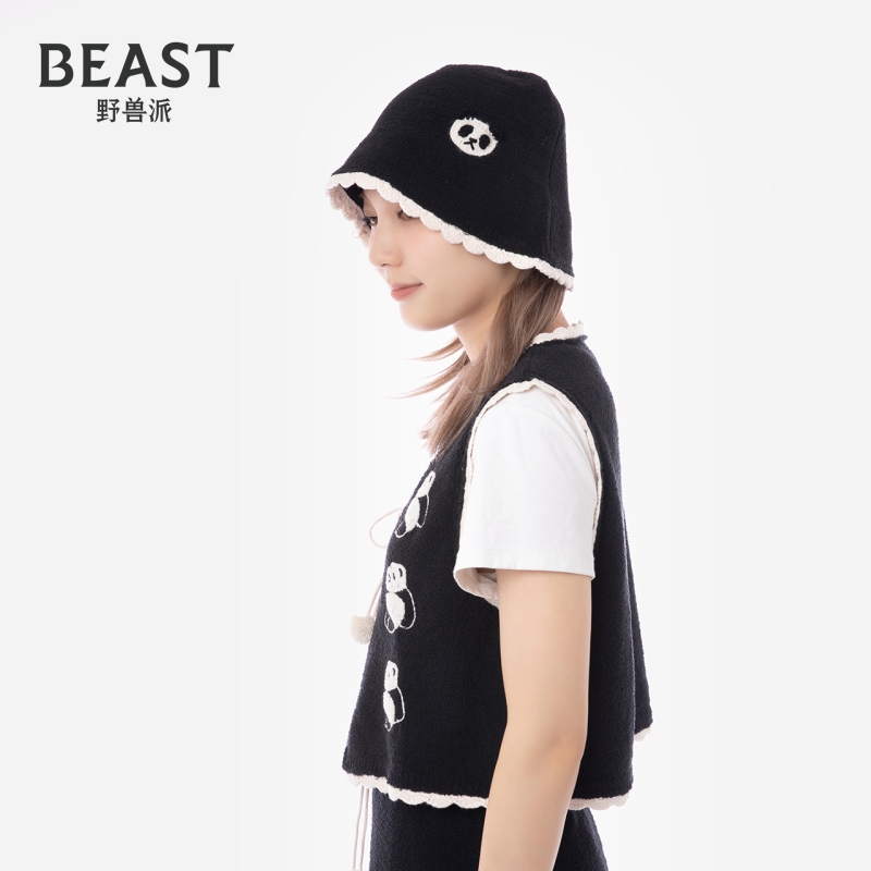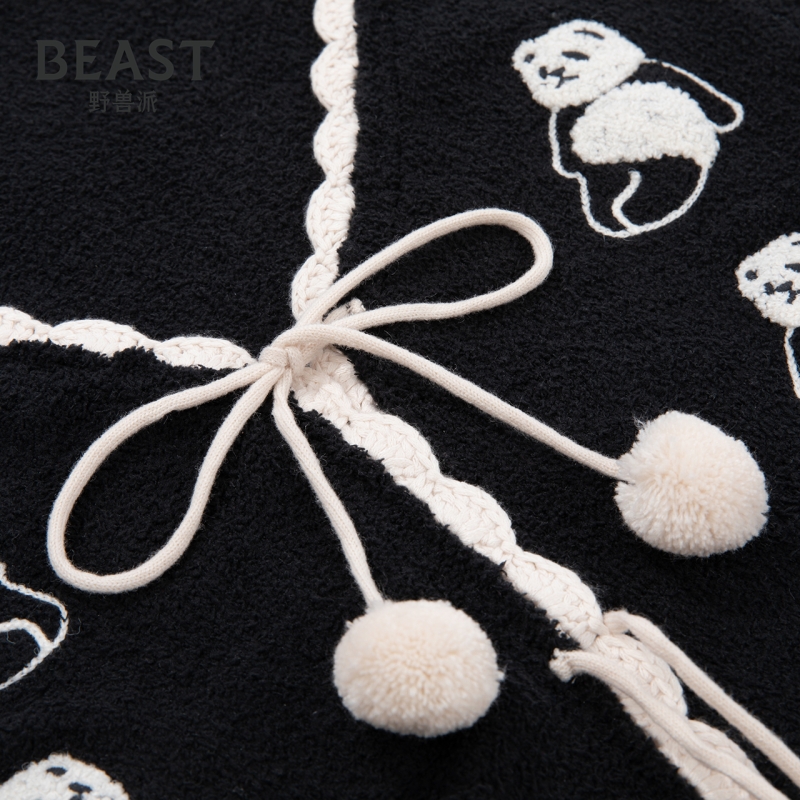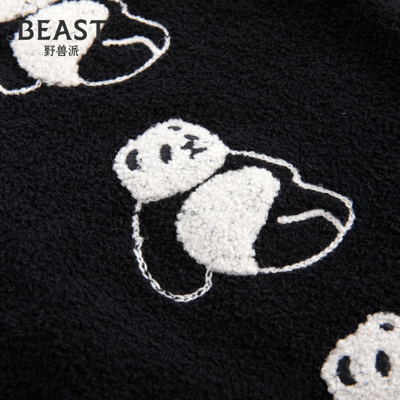 BEAST野兽派熊猫噗噗半边绒针织马甲送女生生日礼物