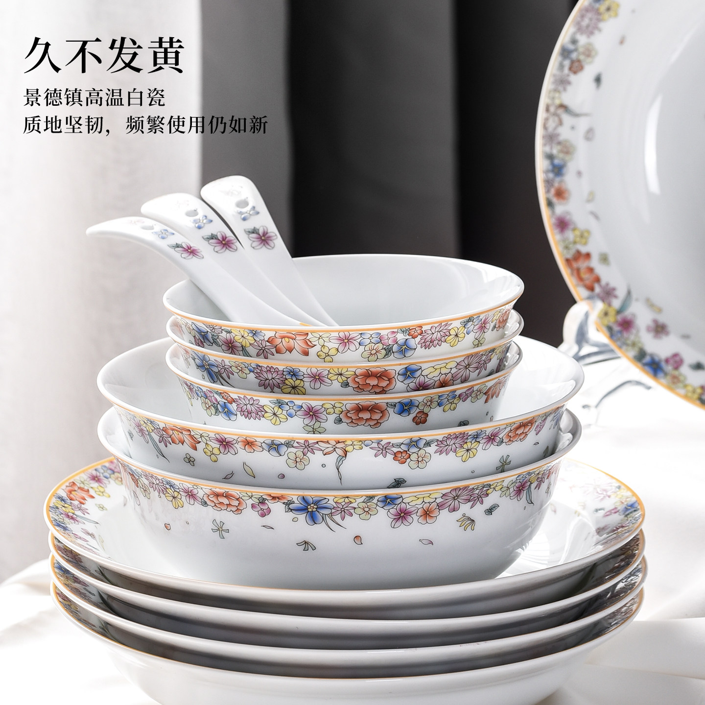 古镇陶瓷 景德镇高温瓷餐具套装碗碟套组礼盒中式简约北欧瓷器碗
