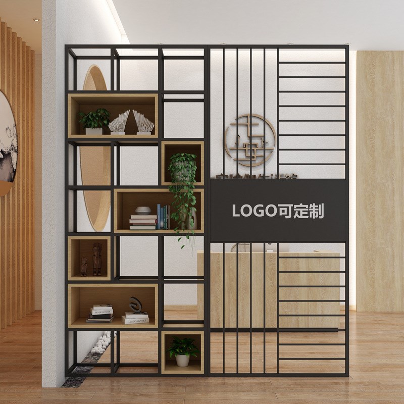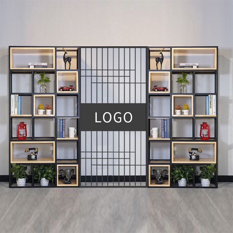 屏风隔断装饰置物架实木书架现代办公室玄关铁艺花架展示架形象墙