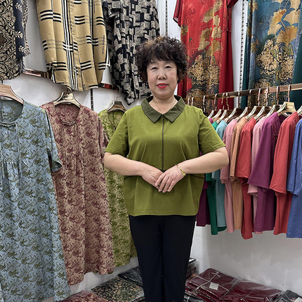 中年人加肥加大娃娃领T恤衫女短袖纯色文艺妈妈夏天休闲上衣弹力