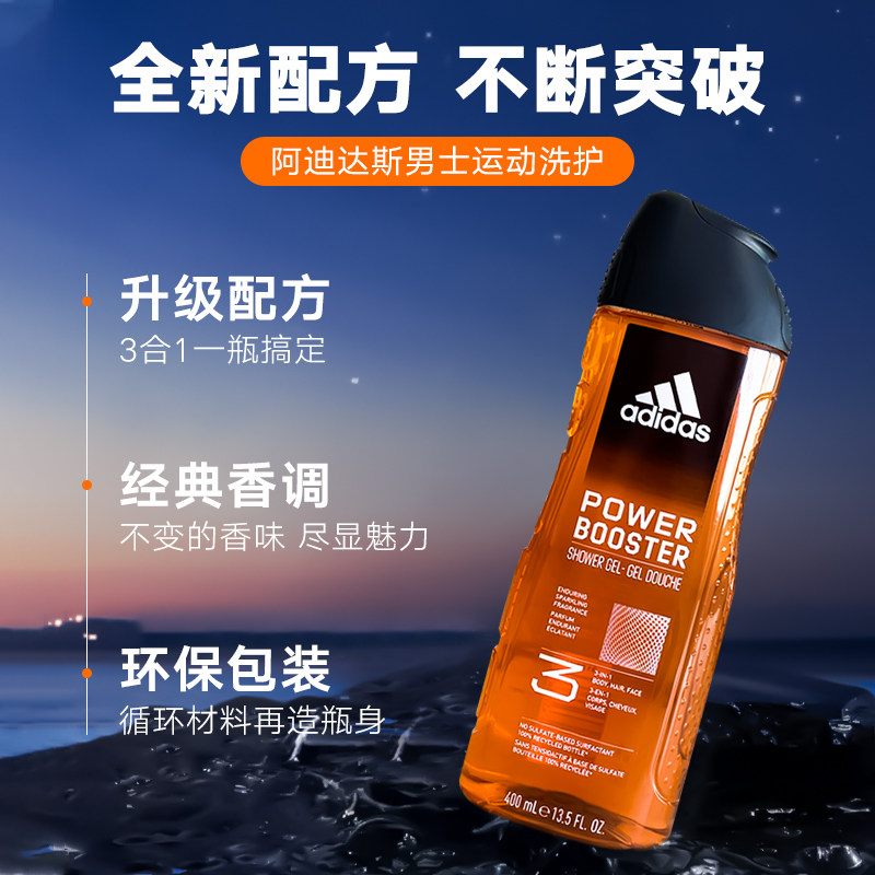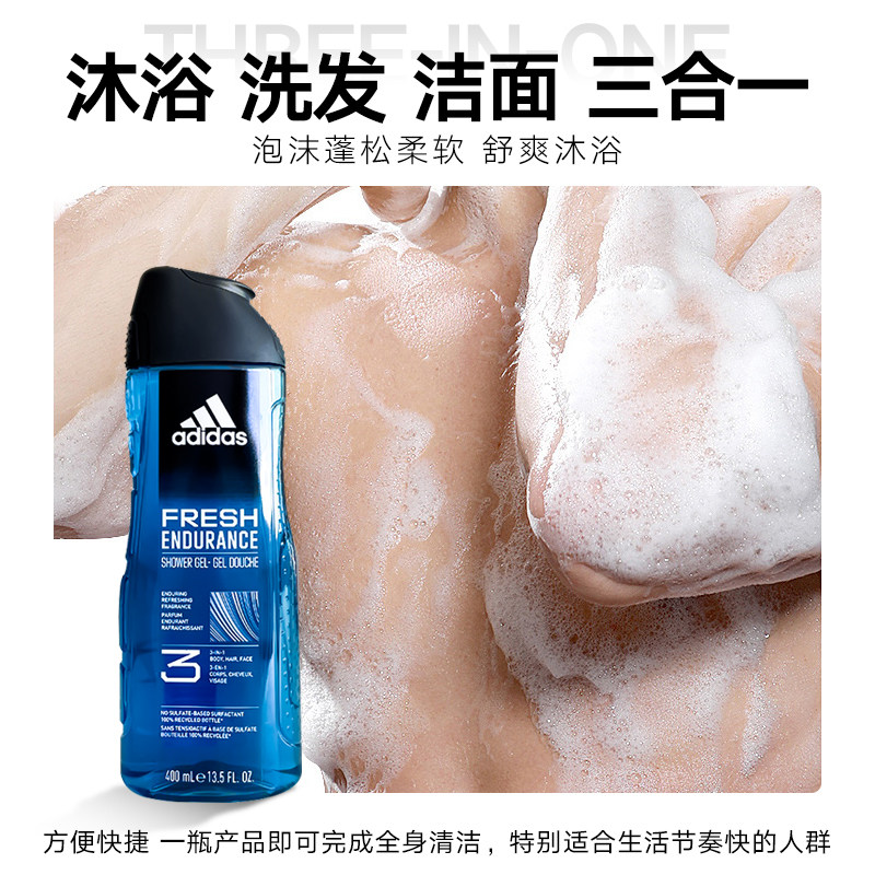 【自营】Adidas阿迪达斯三合一沐浴露男士洗发水持久留香运动冰点