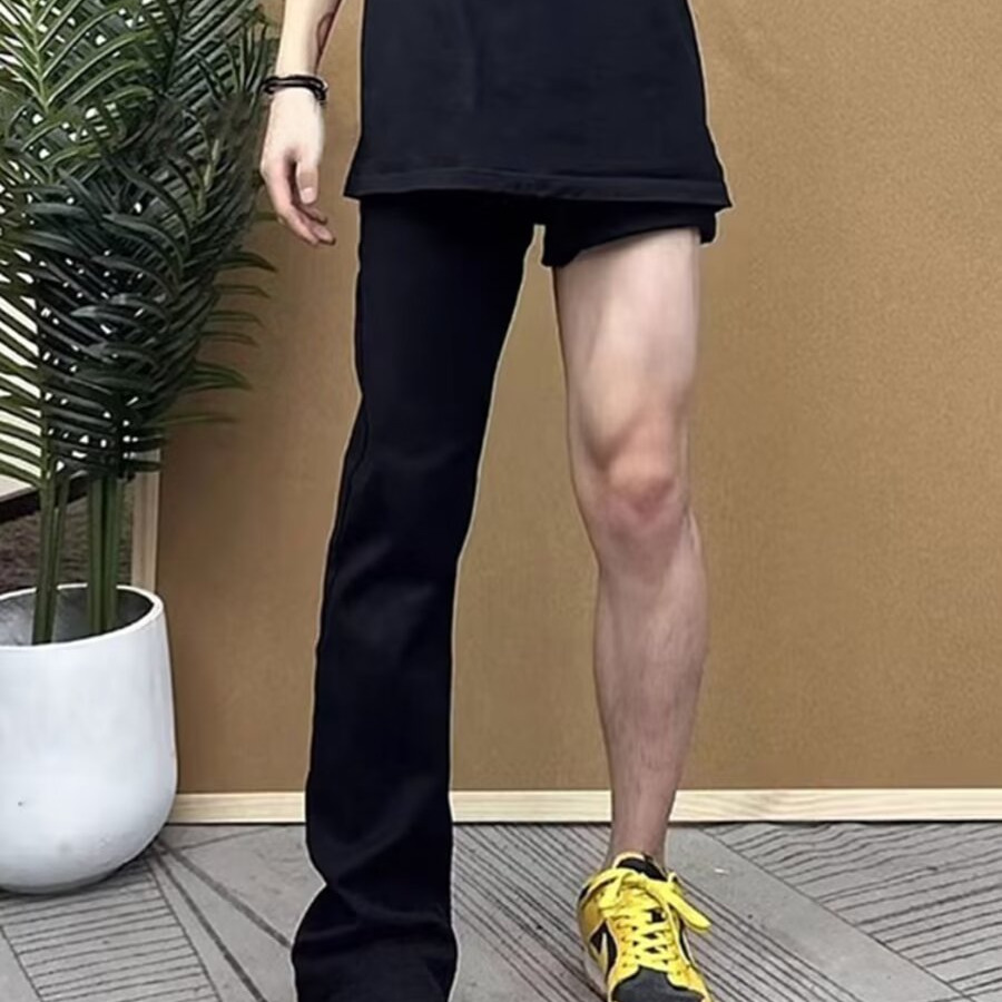 黑色直筒微喇牛仔裤男款春秋美式高街vibe裤子修身显瘦弯刀微喇裤