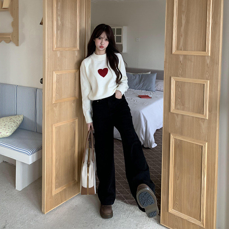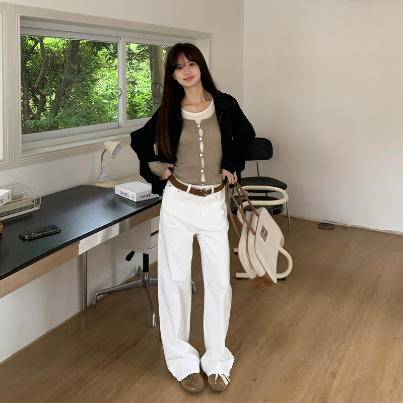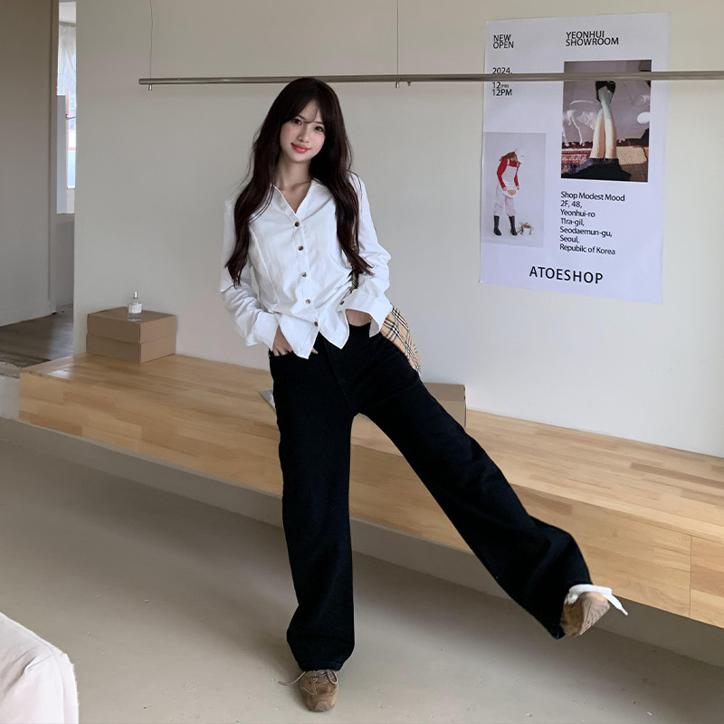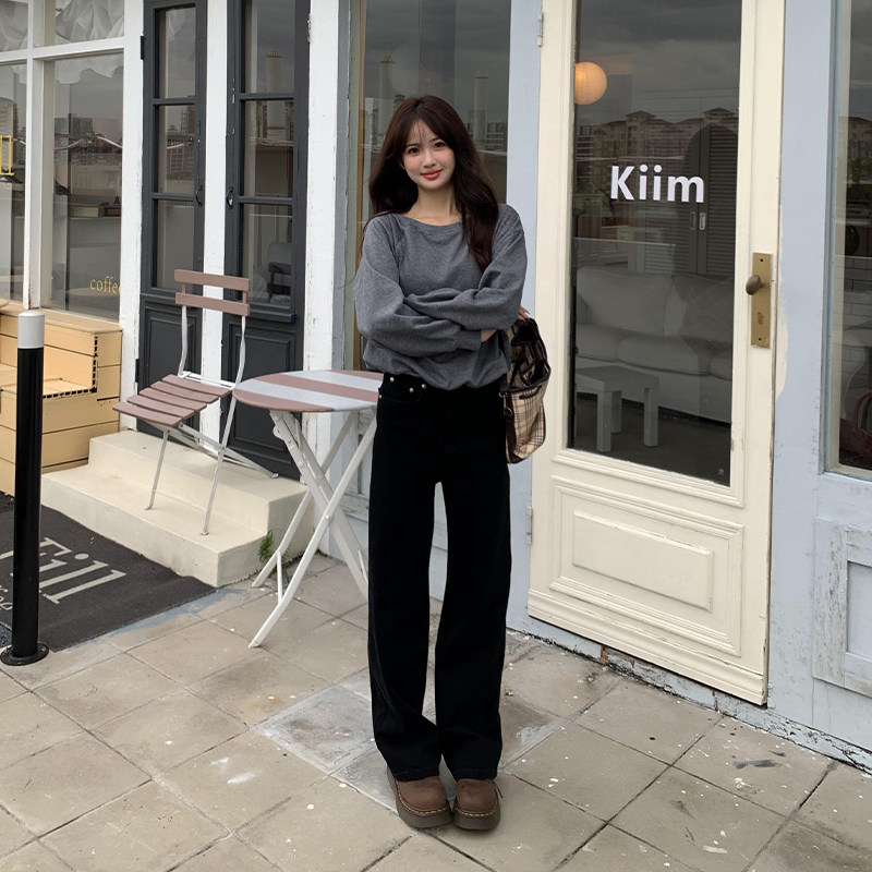 橘子树在哪儿四面弹黑色直筒牛仔裤女秋季复古高腰显瘦百搭拖地裤