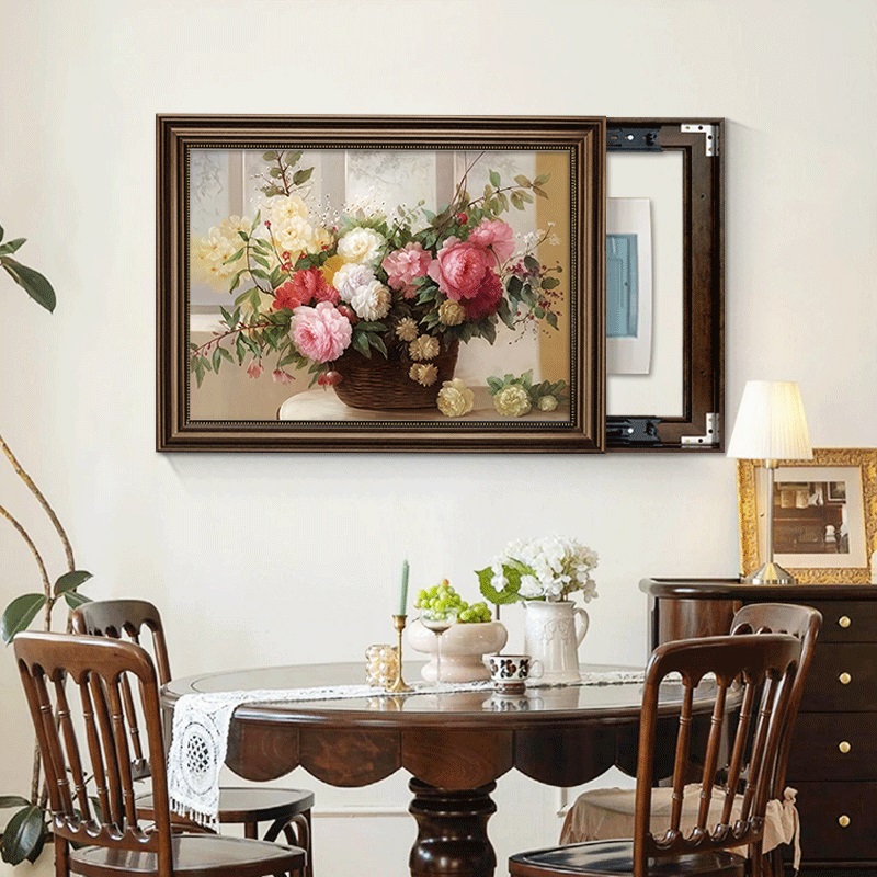 电表箱装饰画2025新款欧式餐厅配电箱遮挡挂画美式竖款油画高级感