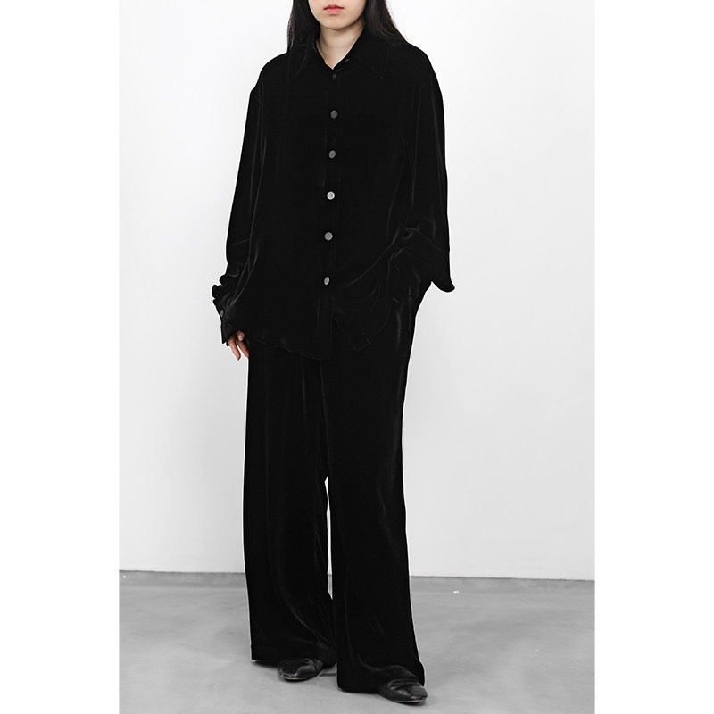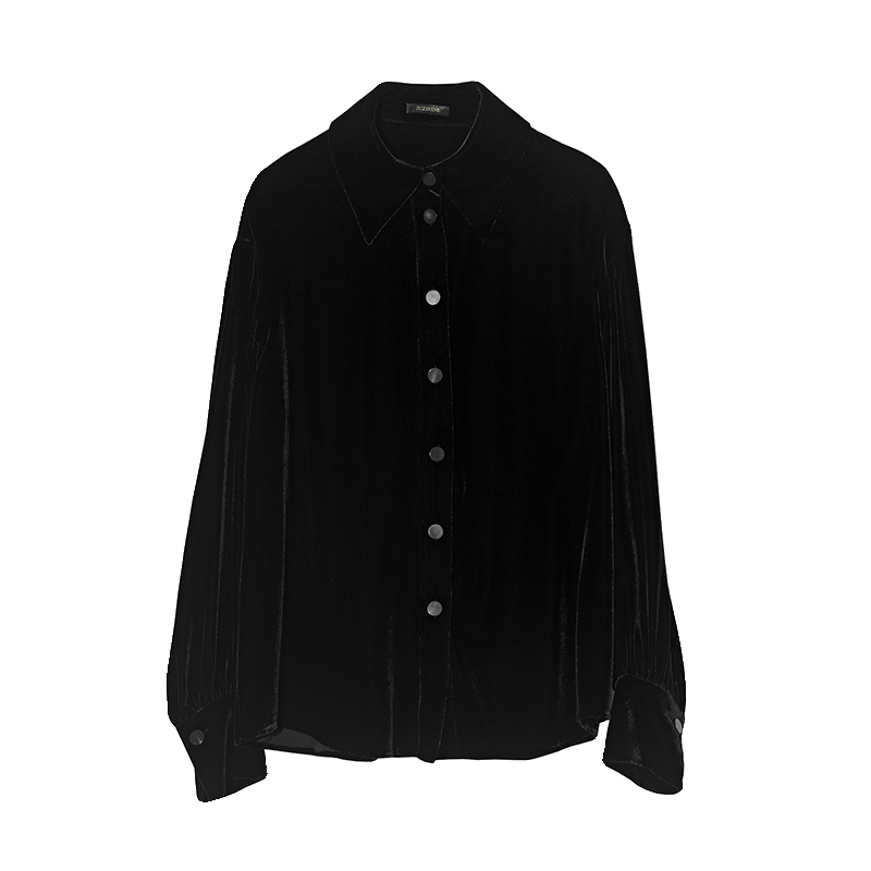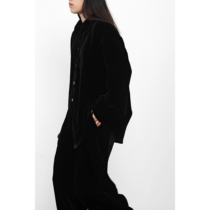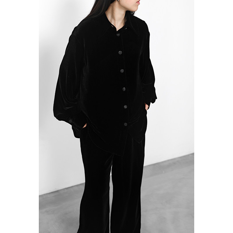 JUZININE · 真丝绒衬衫宽松宫庭袖衬衣桑蚕丝天鹅绒外套上衣