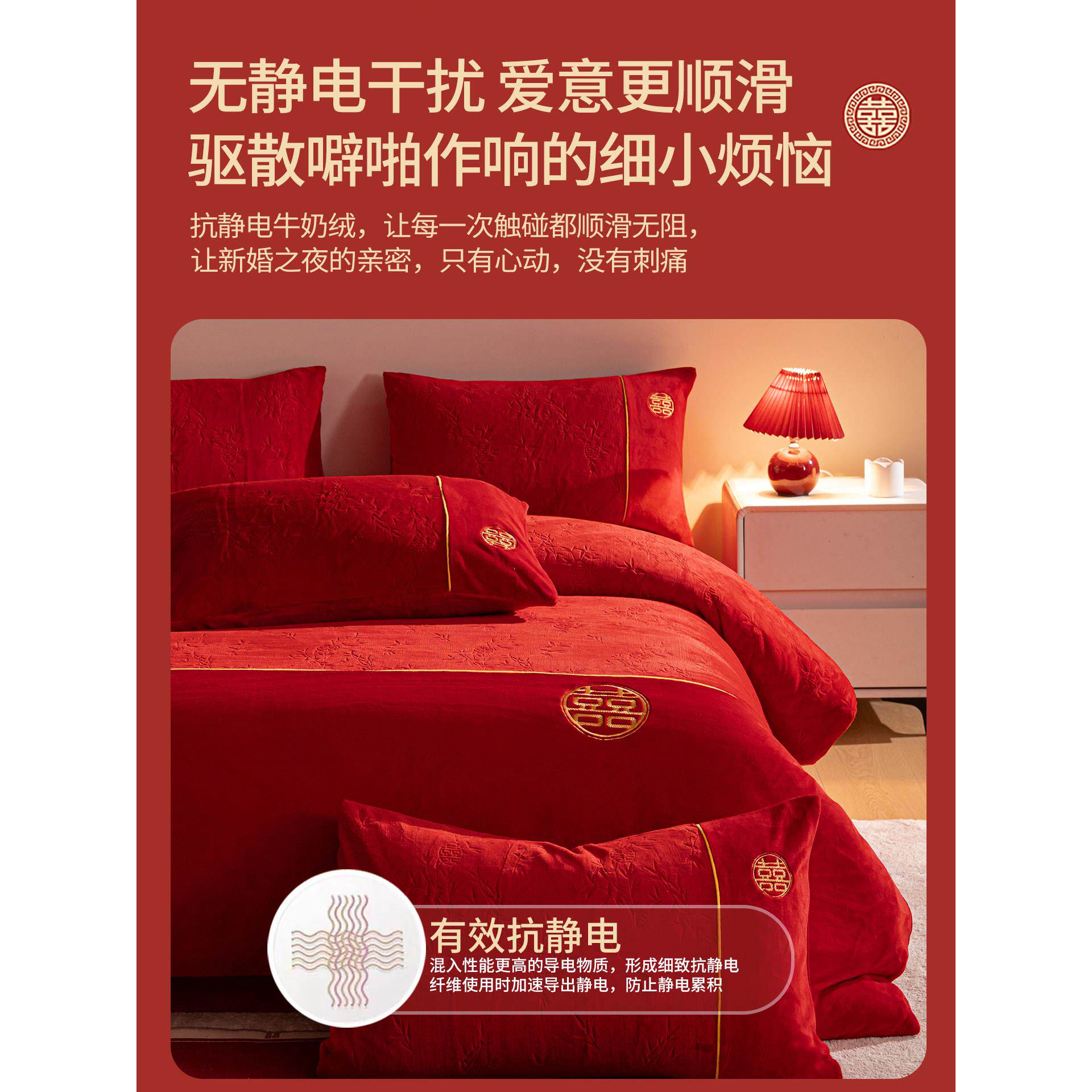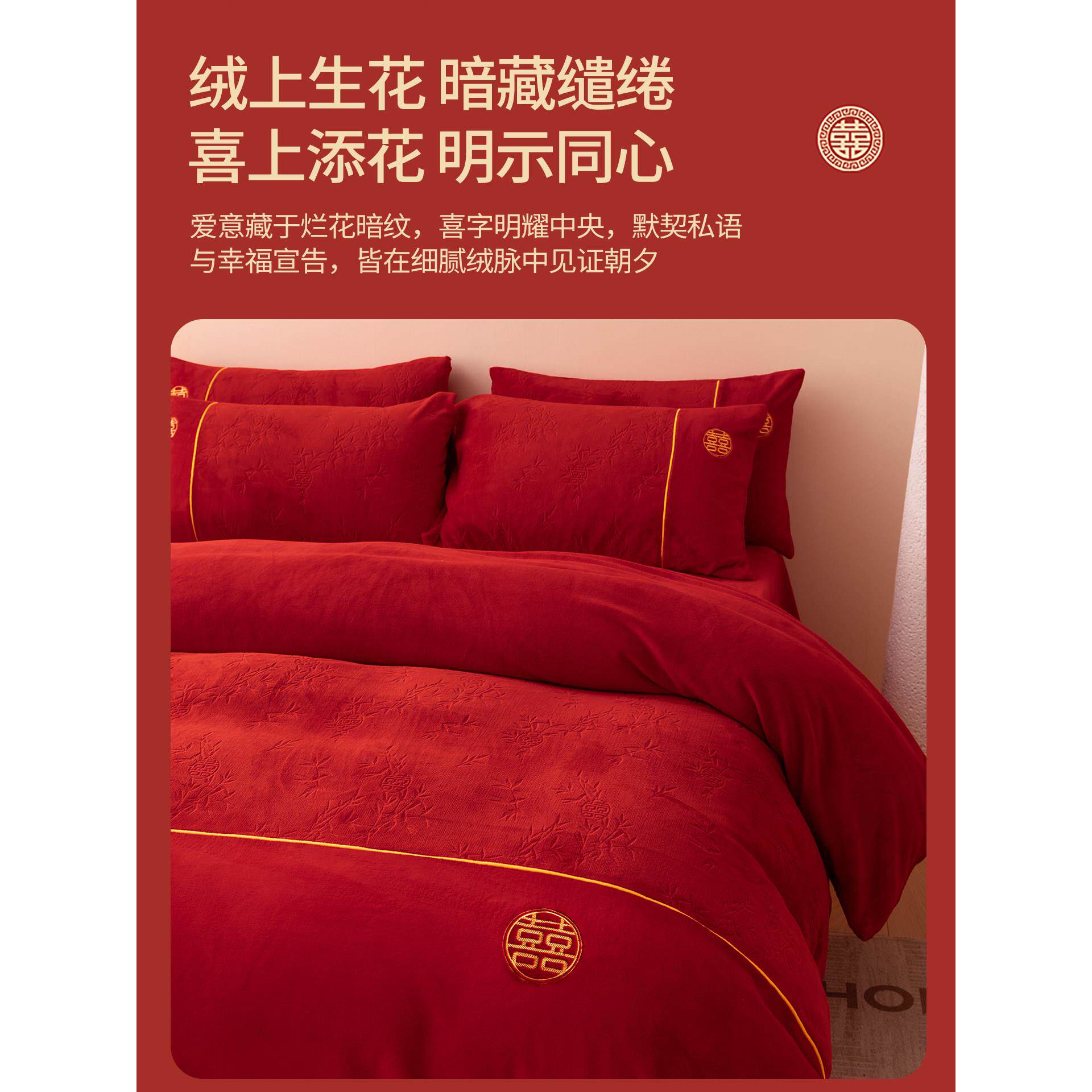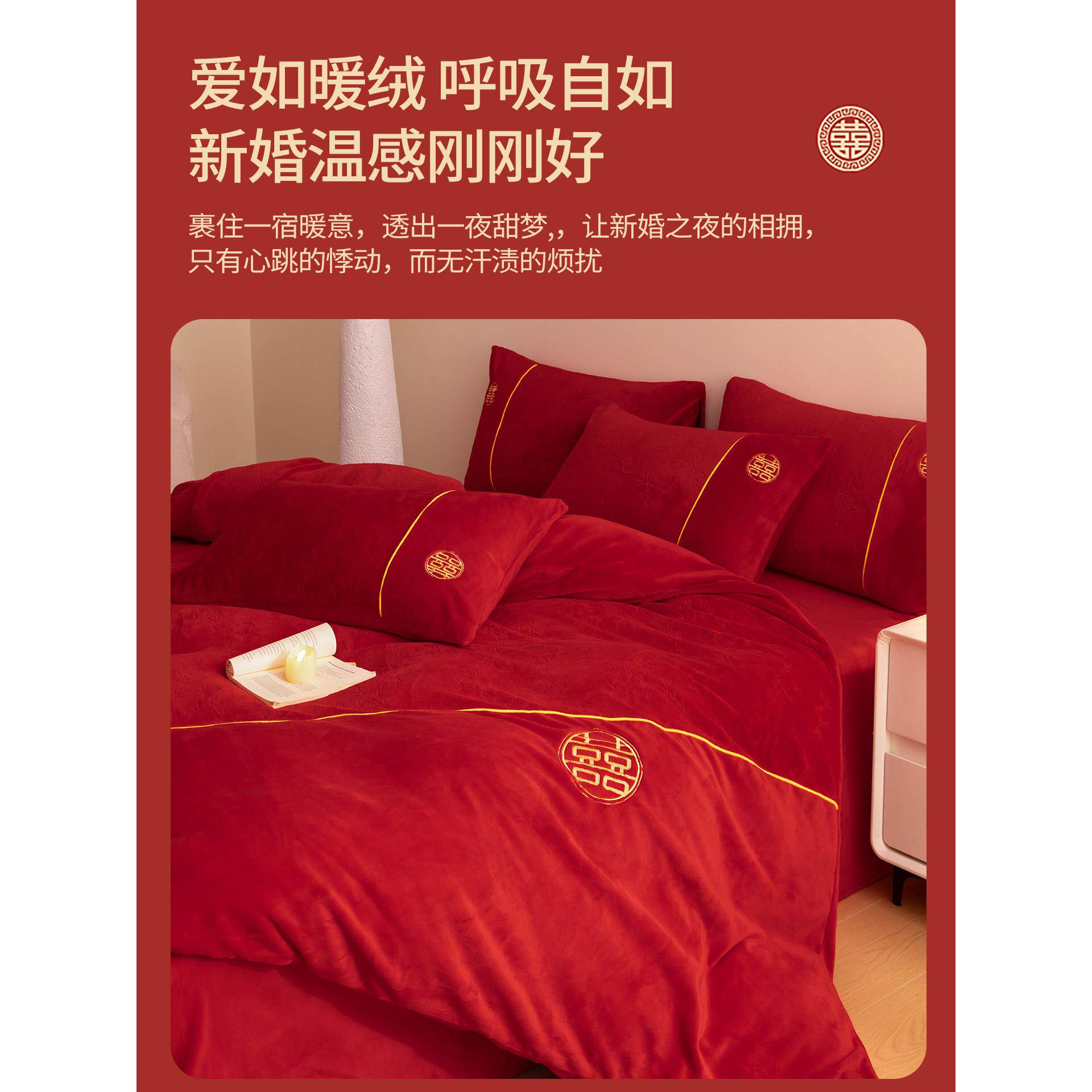 秋冬季牛奶绒红色结婚四件套婚庆加厚保暖珊瑚绒新婚被套床单床品