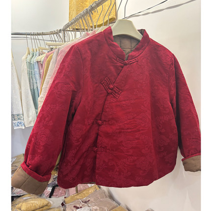 新中式国风红色立领斜襟盘扣棉服女加厚保暖宽松显瘦复古开衫棉袄