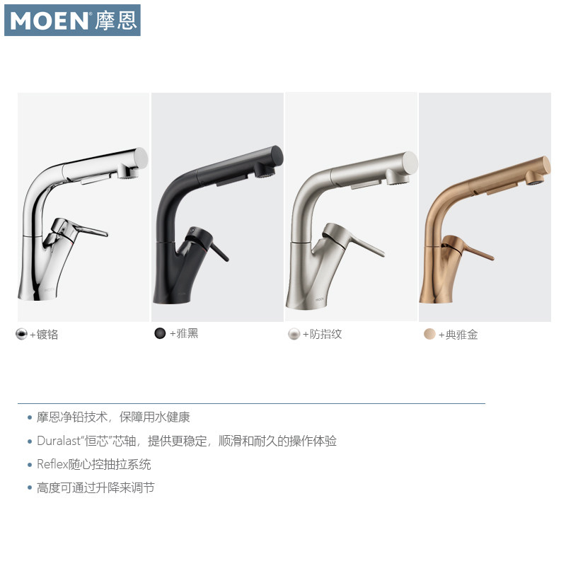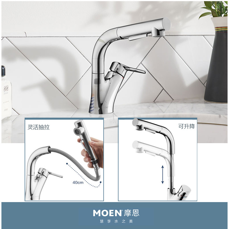 摩恩可抽拉升降全铜家用面盆龙头