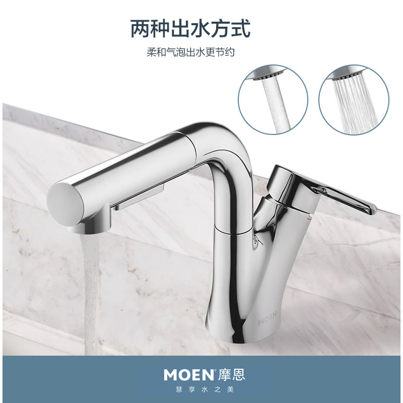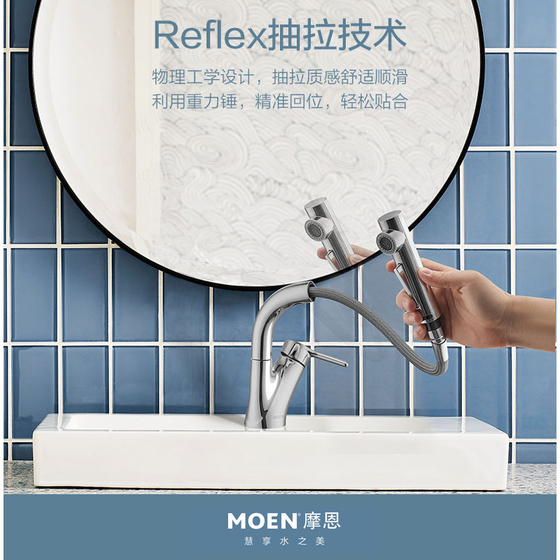 摩恩面盆抽拉式升降水龙头冷热卫生间洗脸盆浴室柜龙头89124/SRN