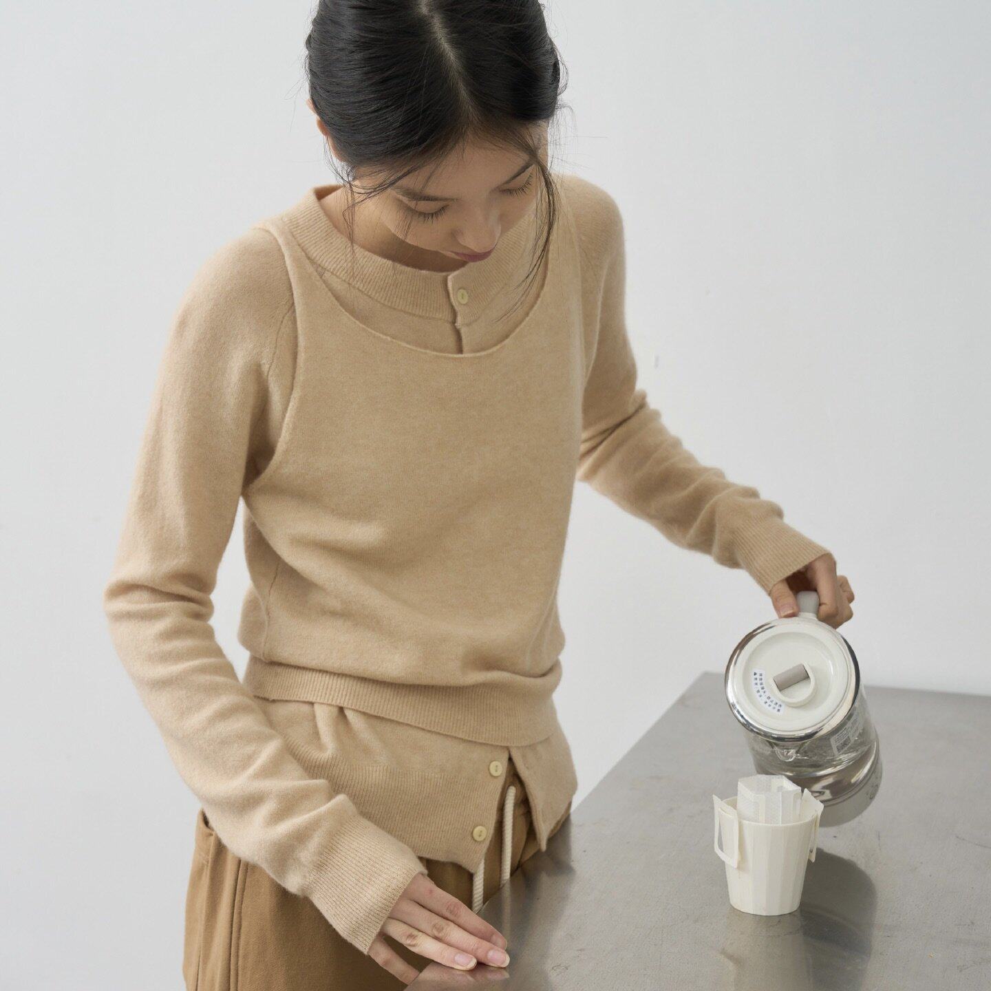 WITHSUUGAR|鄂尔多斯山羊绒精纺丝光羊毛纱针插肩针织开衫 套装