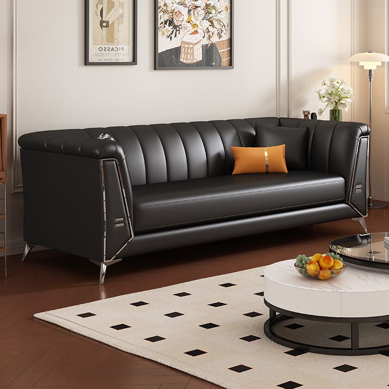 意式极简沙发小户型客厅复古风轻奢现代简约黑色皮艺接待双人沙发
