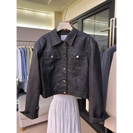 【十三行】A69黑色短款皮衣外套女2025秋冬甜酷PU皮夹克机车上衣
